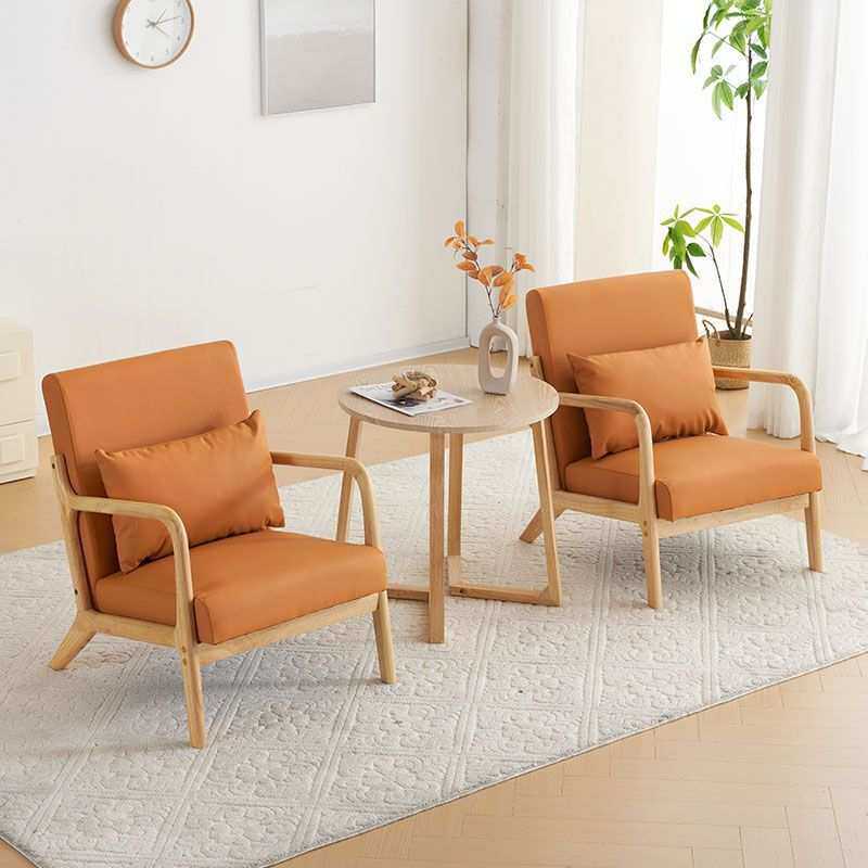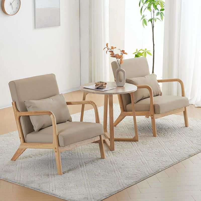 北欧新款实木沙发小户型阳台书房卧室会客洽谈单人位桌椅组合套装
