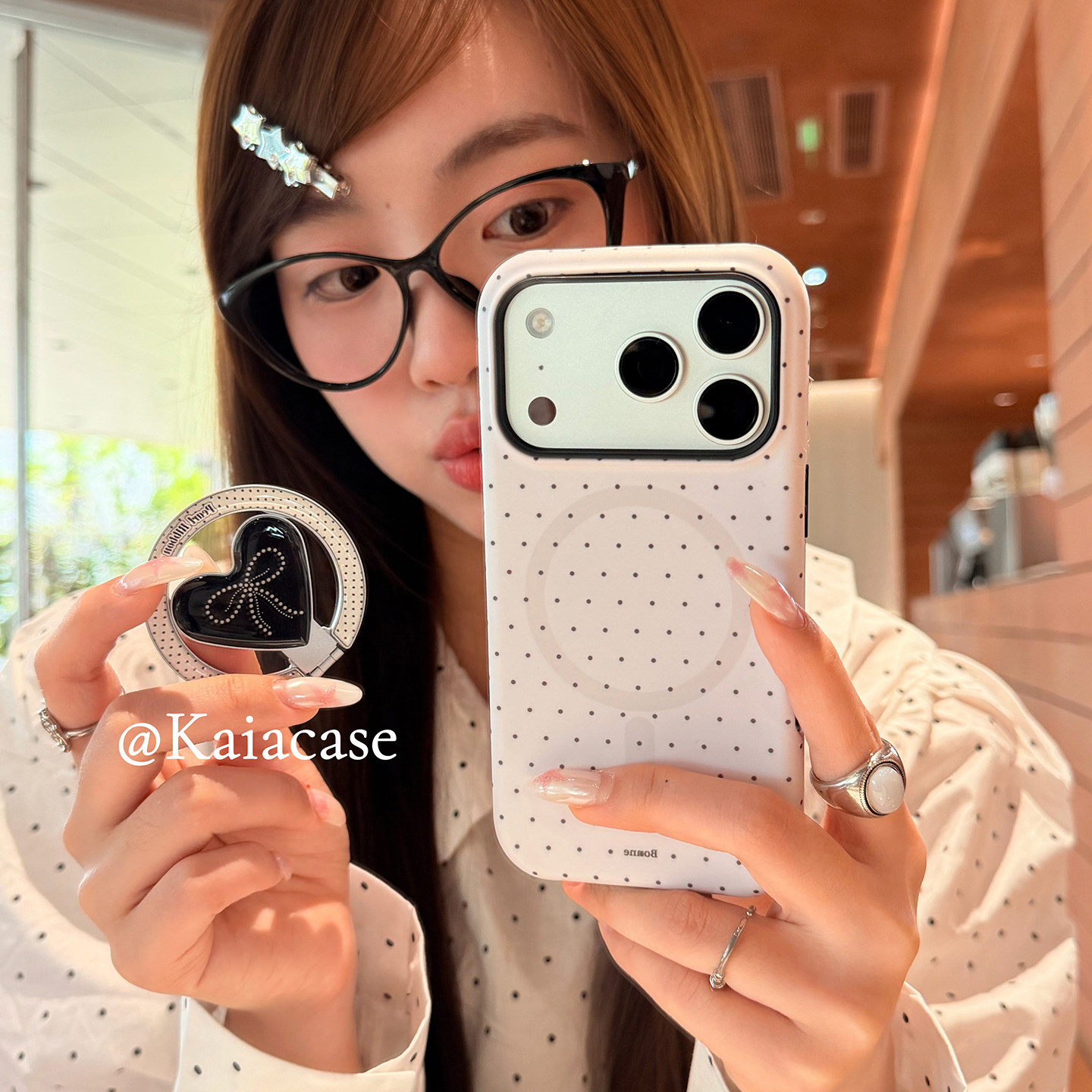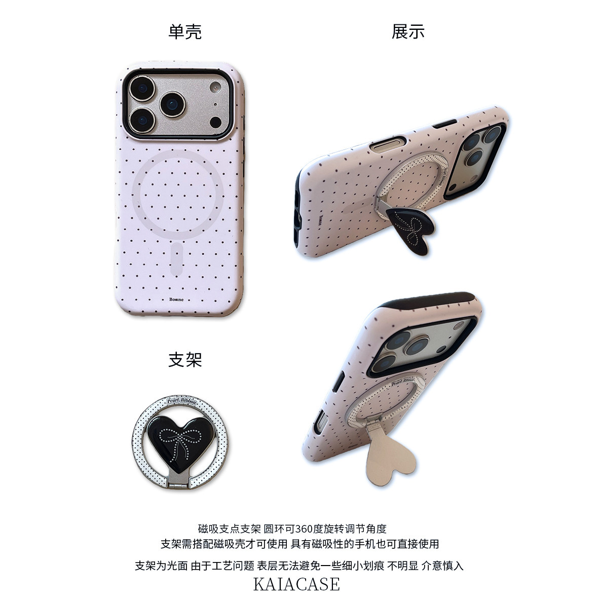 kaia日韩ins简约波点蝴蝶结适用苹果17promax手机壳iphone16pro新款13女14pro磁吸支架15pro二合一防摔手机套
