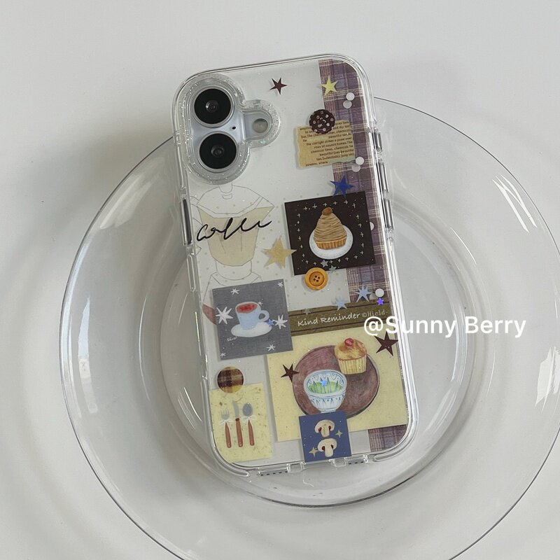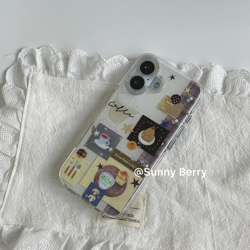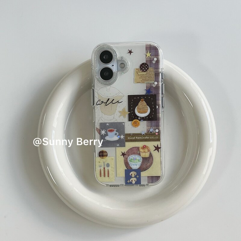 向日的浆果ins日韩小众可爱古早手账拼贴茶点手绘风插画适用苹果17pro手机壳iphone16promax/14/15保护套防摔