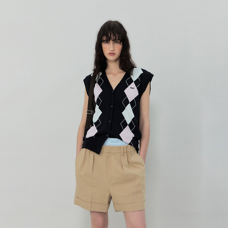GROVE官方旗舰店2025SS春夏款女士条纹梭织短裤GS5PT15M