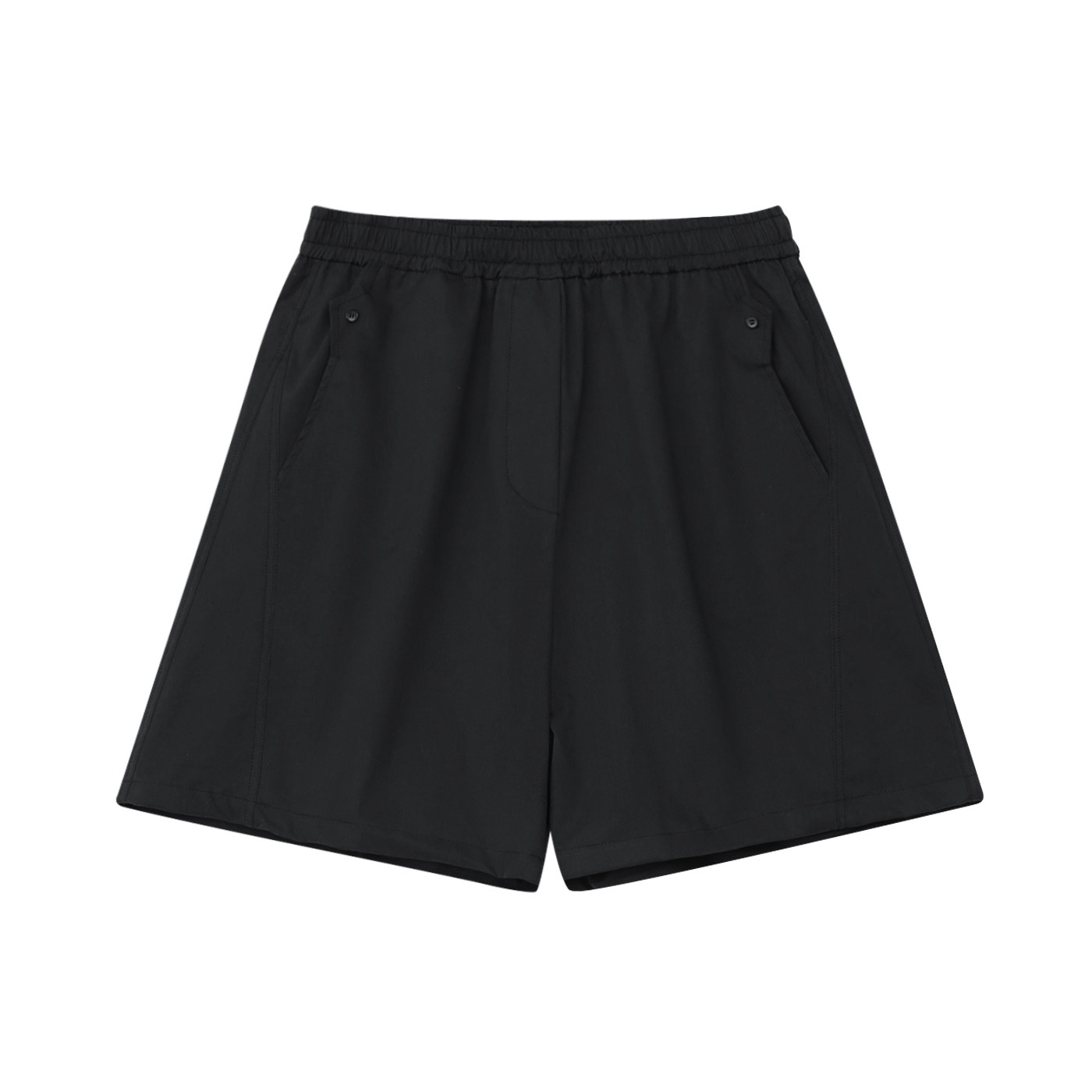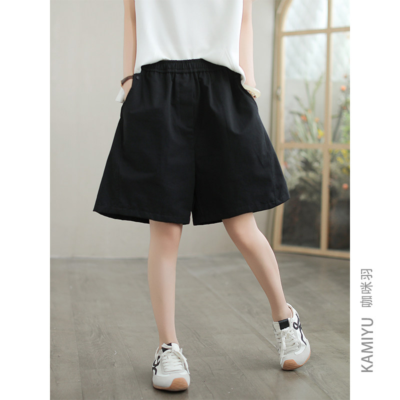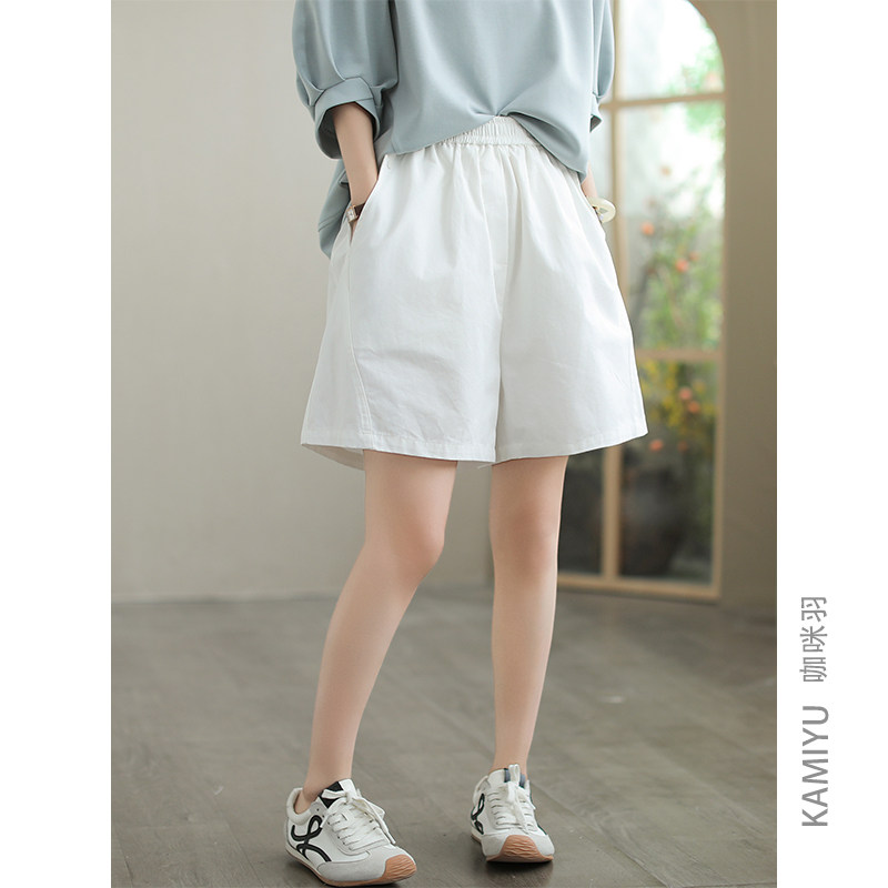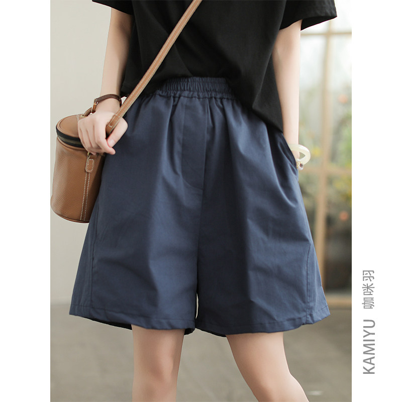 咖咪羽100%棉休闲短裤女时尚文艺直筒纯色宽松拼接百搭女装休闲裤