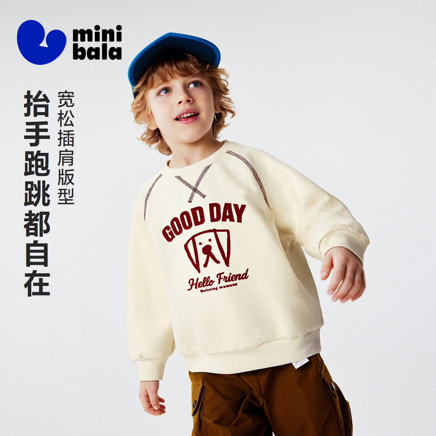 迷你巴拉男童儿童卫衣插肩袖春季新品柔软亲肤网眼透气学院风上衣