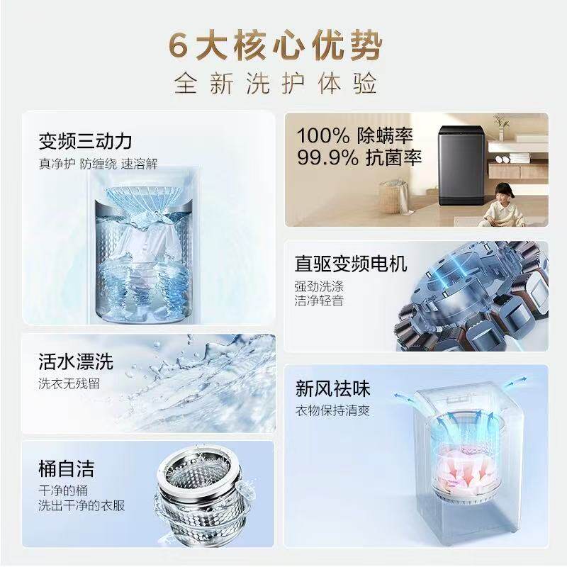 TCL B100V6-DP 水旋风波轮洗衣机V6 Pro除螨 变频三动力DDM电机