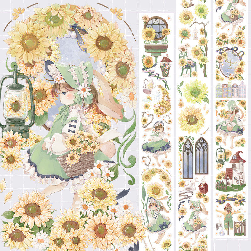 花卉胶带素材贴纸叻普哒小清新少女心diy手帐装饰pet 兔兔与葵