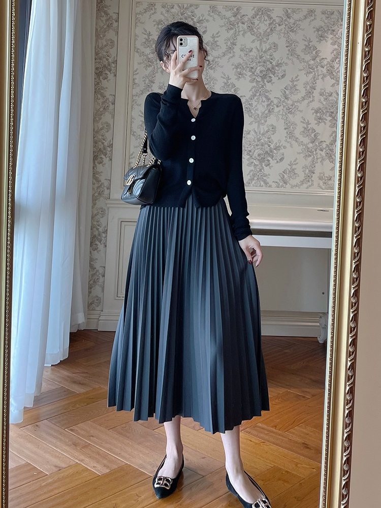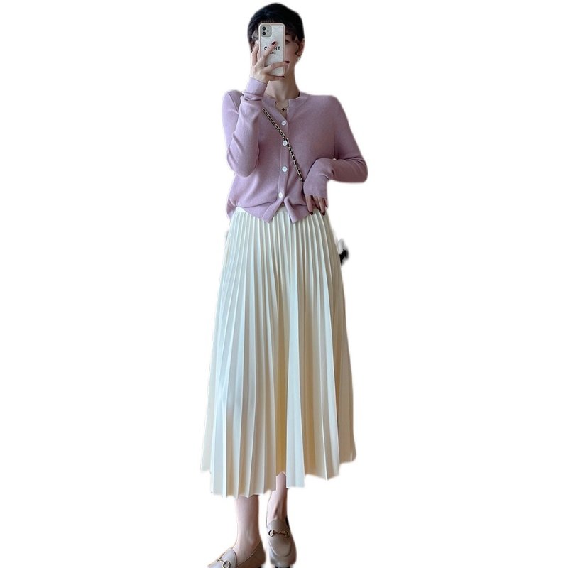 秋冬羊绒半身裙女秋冬新款中长高腰显瘦百褶大摆裙A字针织羊毛裙