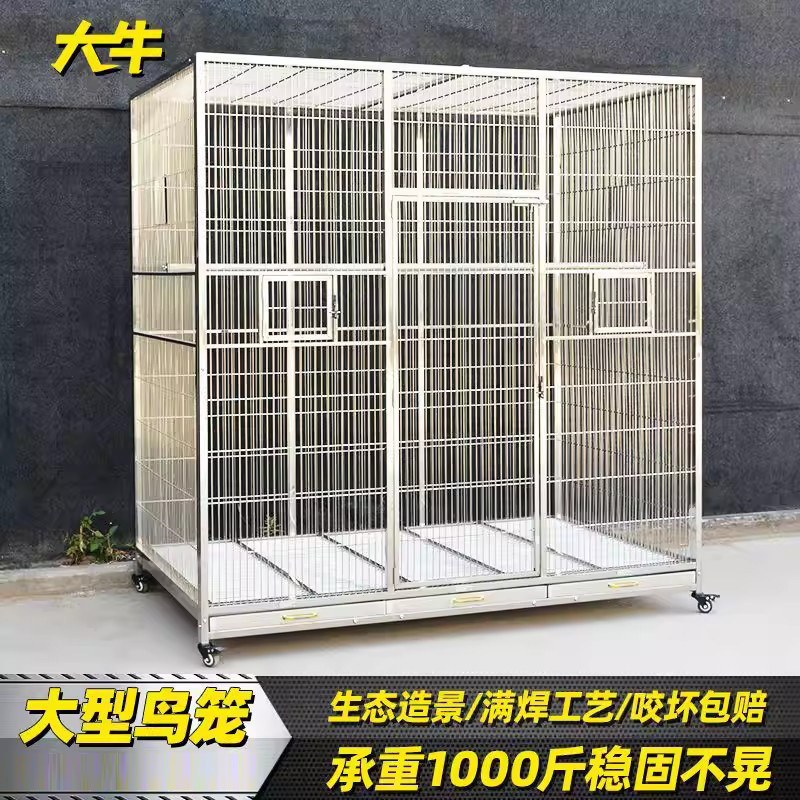 不锈钢鸟笼大型方形特大号新款大鸟笼家用八哥玄凤庭院鹦鹉笼304