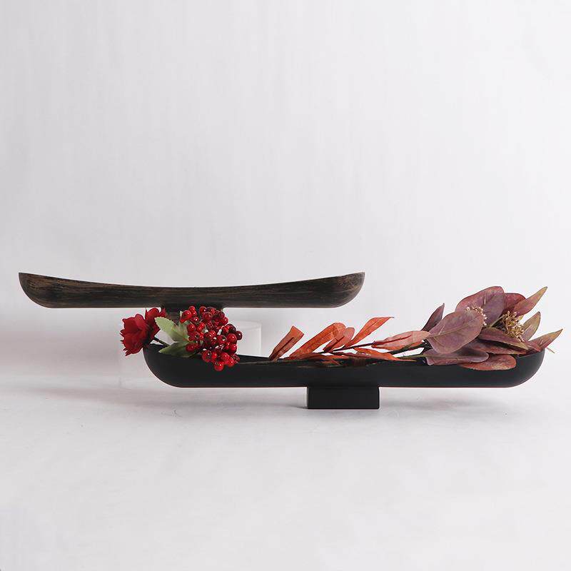 新中式铁艺长条船型摆件诧寂风复古桌面苔藓花器家居样板间装饰品