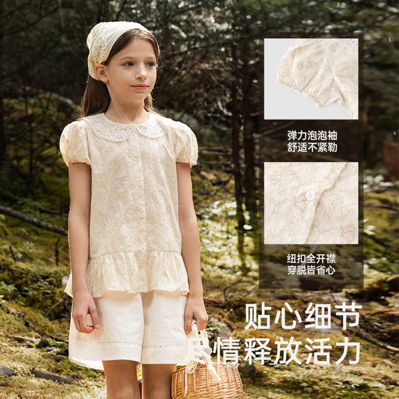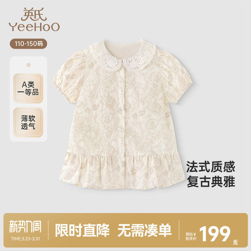 【商场同款】英氏儿童衬衫夏季短袖可爱百搭上衣女童衬衣