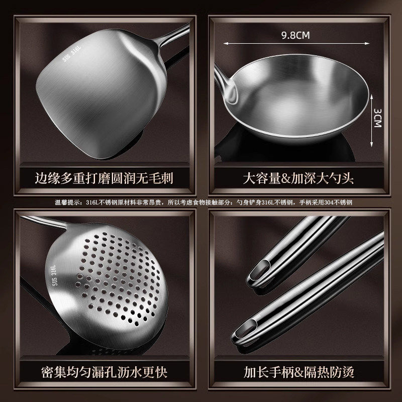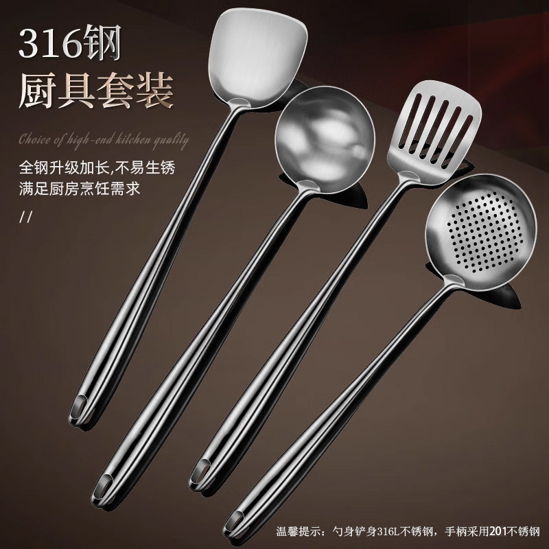 316不锈钢炒勺厨师专用炒菜勺铲子勺子家用漏勺汤勺锅铲厨具套装