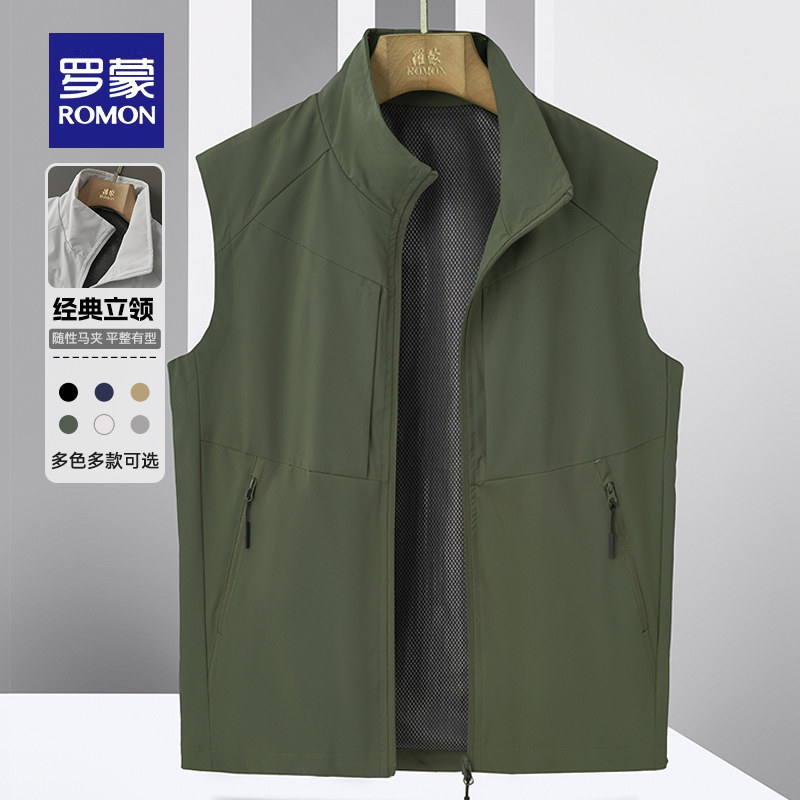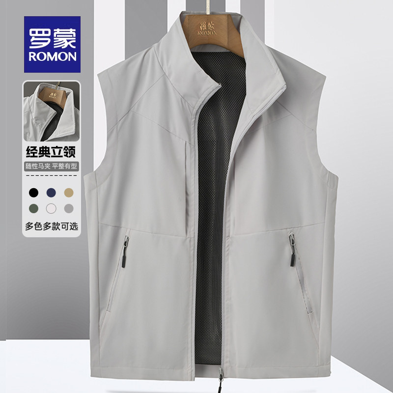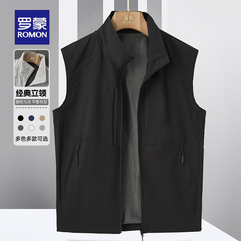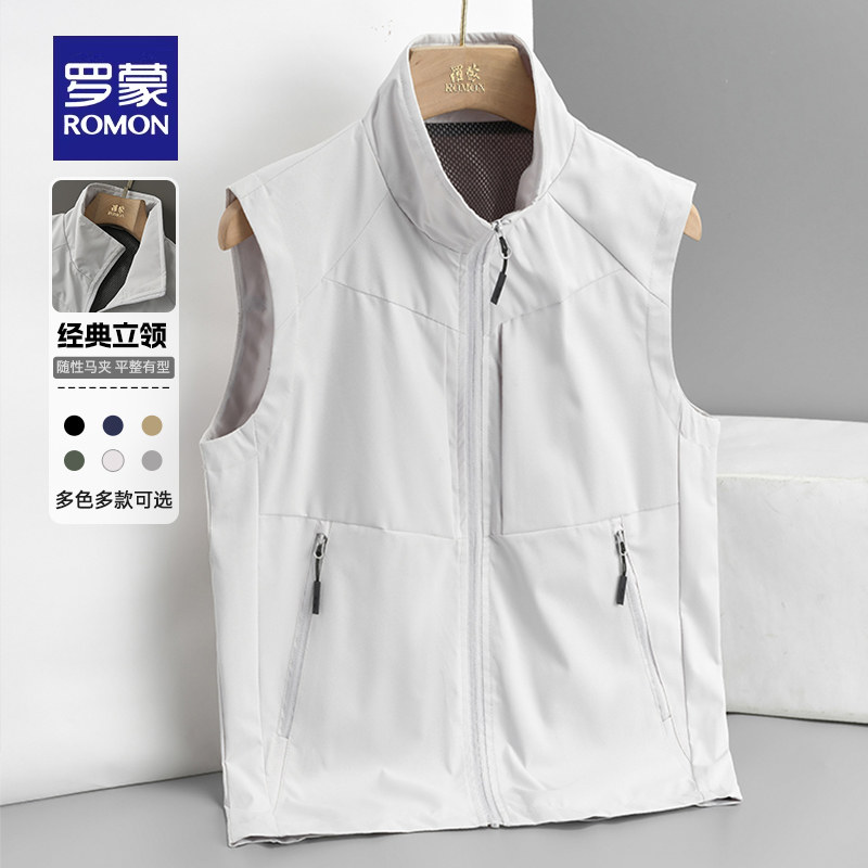罗蒙2026春季新款男士户外钓鱼休闲短款立领马甲时尚百搭修身外套