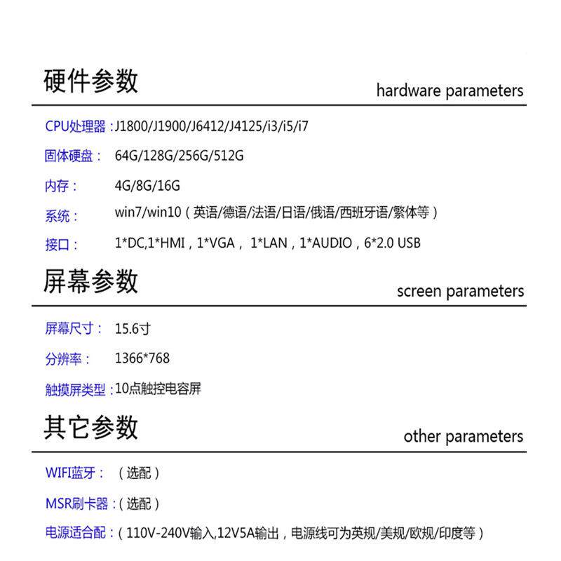 海外版触摸屏双屏收银机英文日语国外餐饮超市零售服装一体机