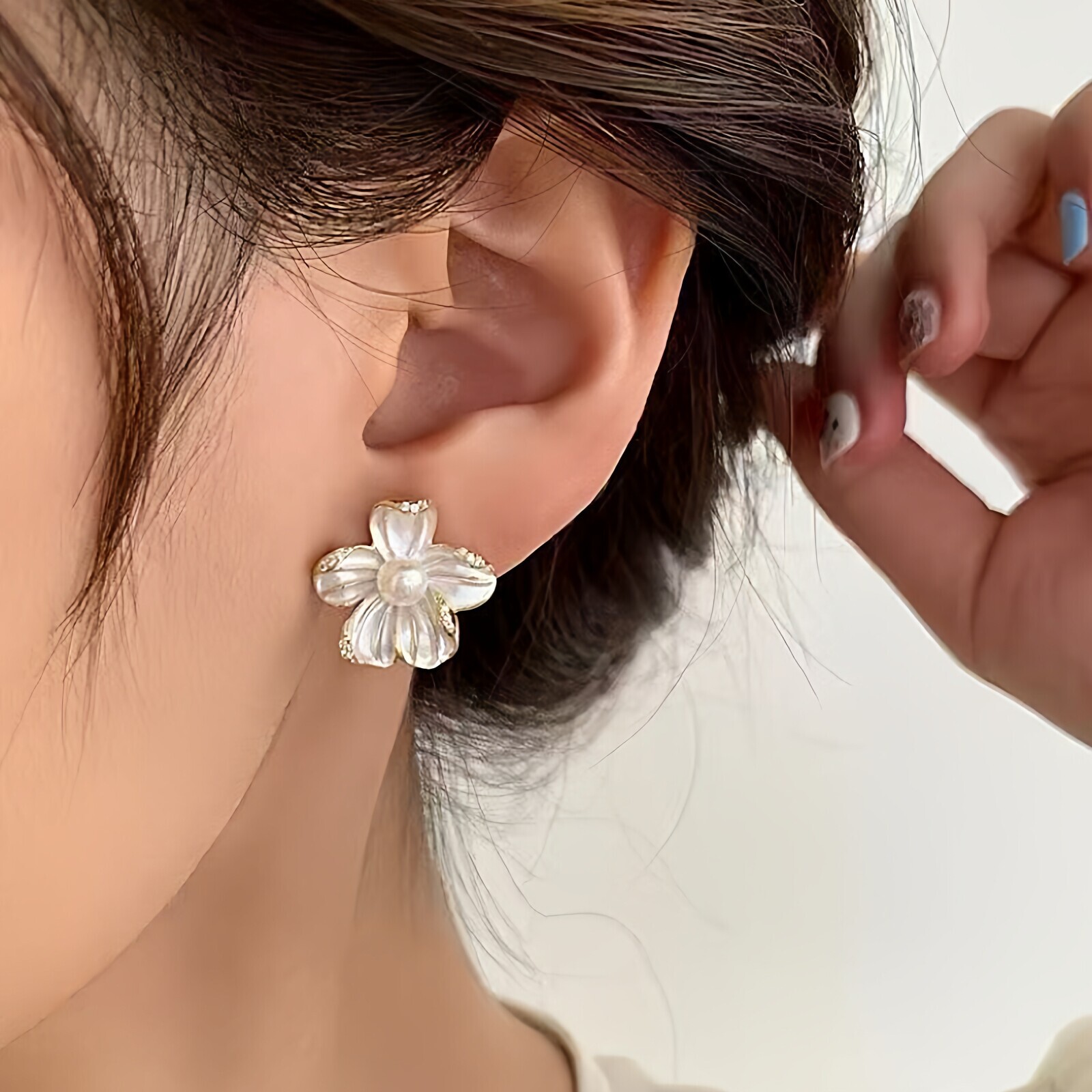 诸暨淡水珍珠耳钉女新款桃花耳环925银针防过敏耳饰礼物馒头扁圆