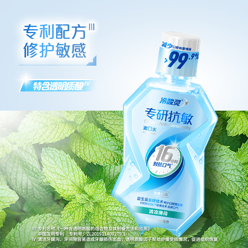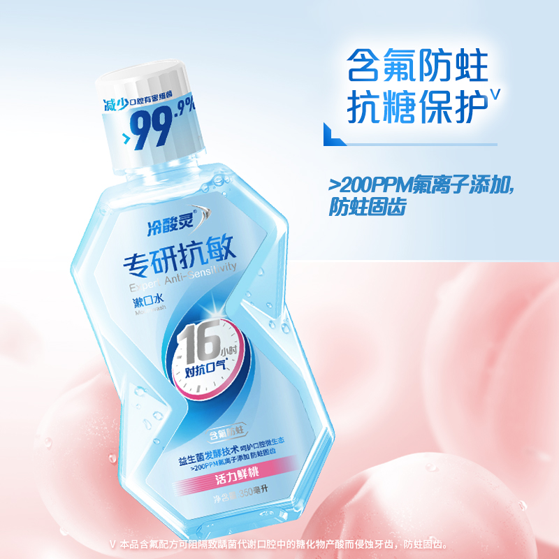 冷酸灵专研漱口水含氟防蛀便携成人漱口水益生菌清新口气温和护龈