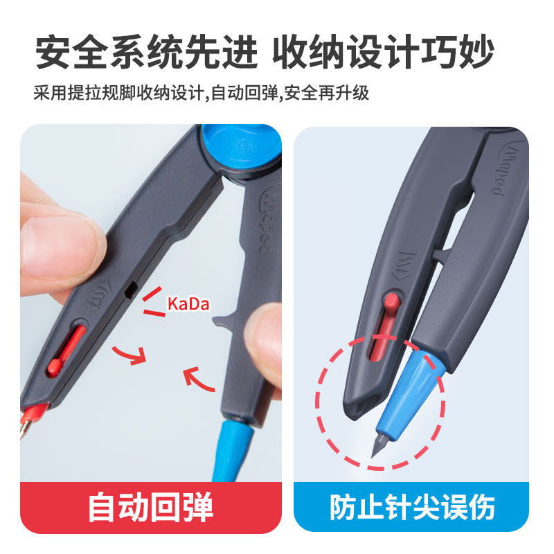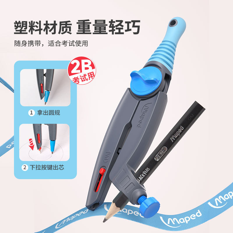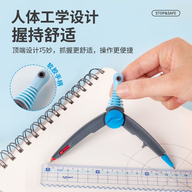 法国Maped马培德安全锁距工具便携高精度替换笔芯专业绘图会伸缩2B法国考试圆规套装学生考试专用可带入考场