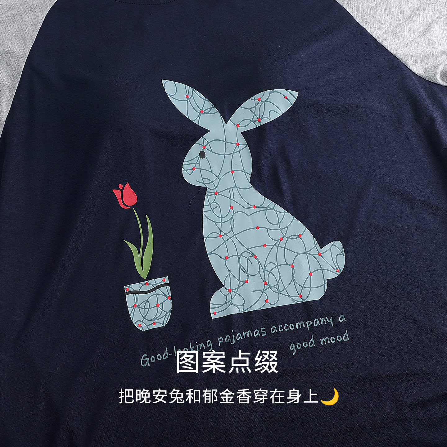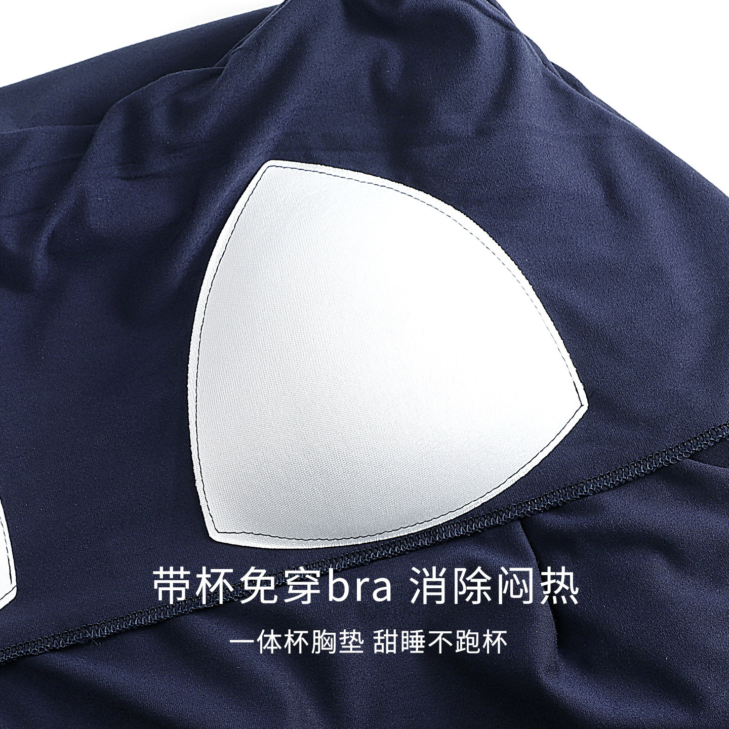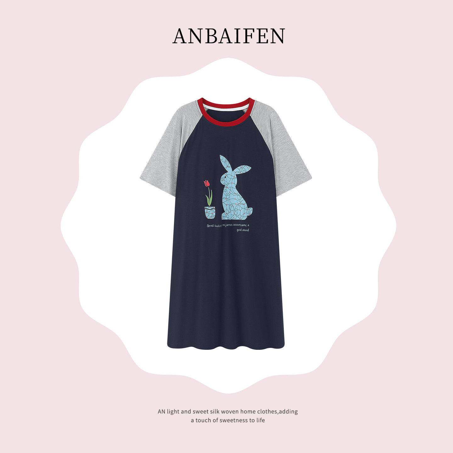 末里末【带胸垫】2026早春季撞色带胸垫连衣睡裙中长款圆领家居服