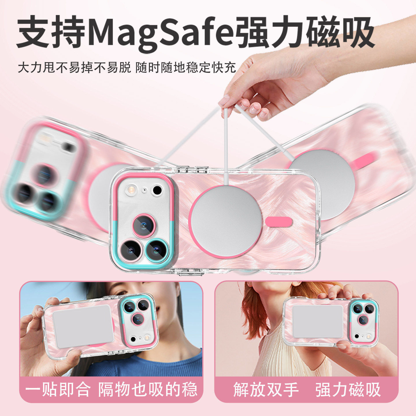 【磁吸羽纱】镭射适用iPhone17Pro手机壳苹果16Promax支架15/14por防摔air全包透硅胶13/12高档11女11p保护套