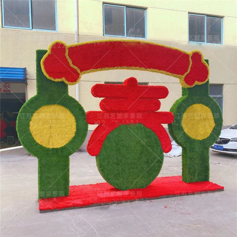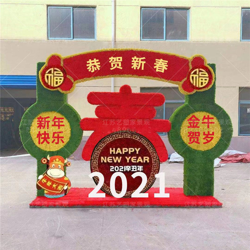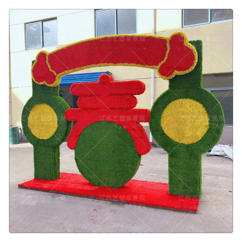 2021春节绿雕花坛立体仿真植物新年城市绿化装饰城市亮化绿植草雕