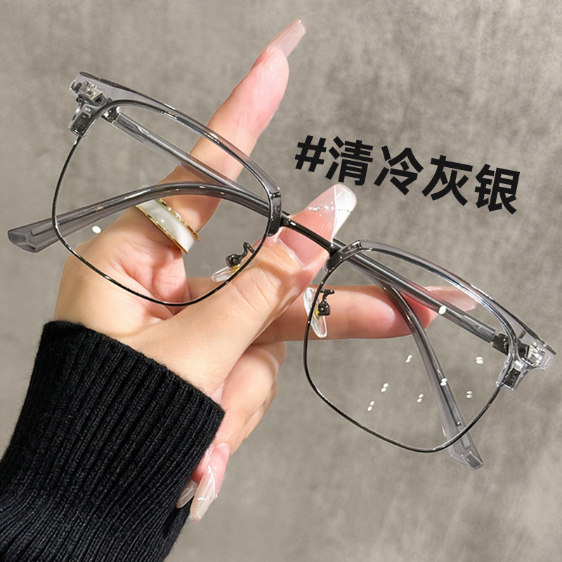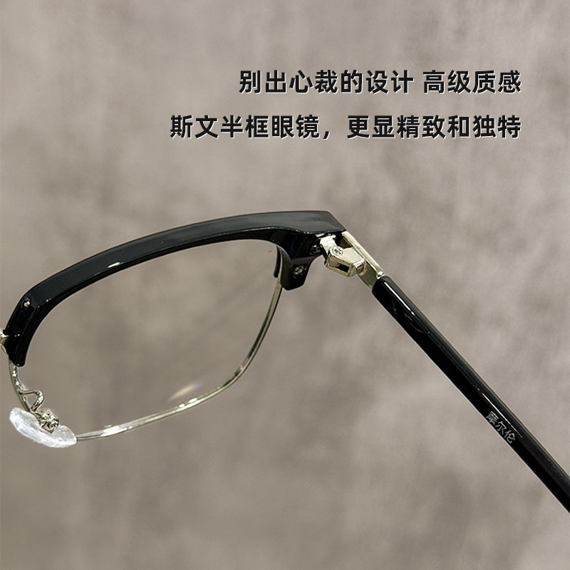 半框眼镜近视男款防蓝光平光可配度数高级感男眼睛架护眼专业散光