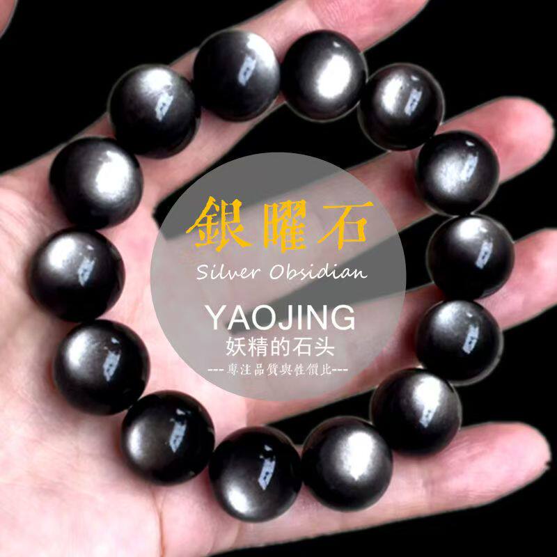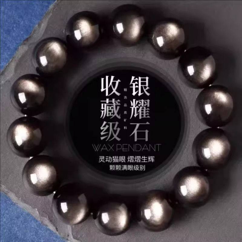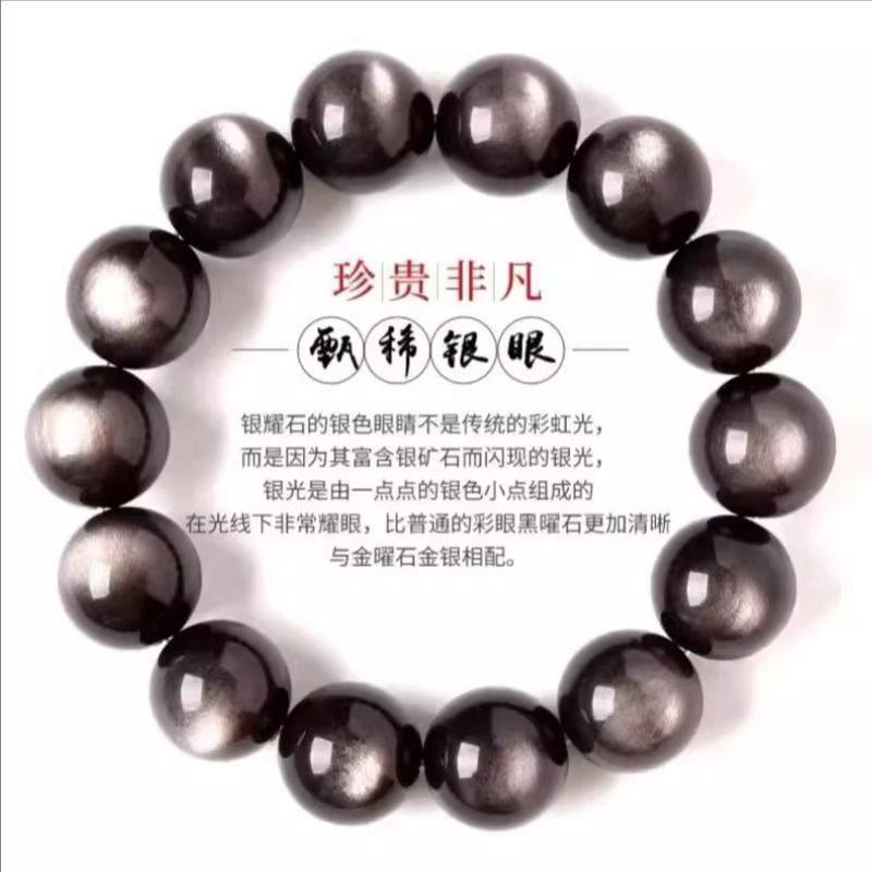 高端极细天然银曜石手链女银曜石转运珠佛珠手串男复古珠子串