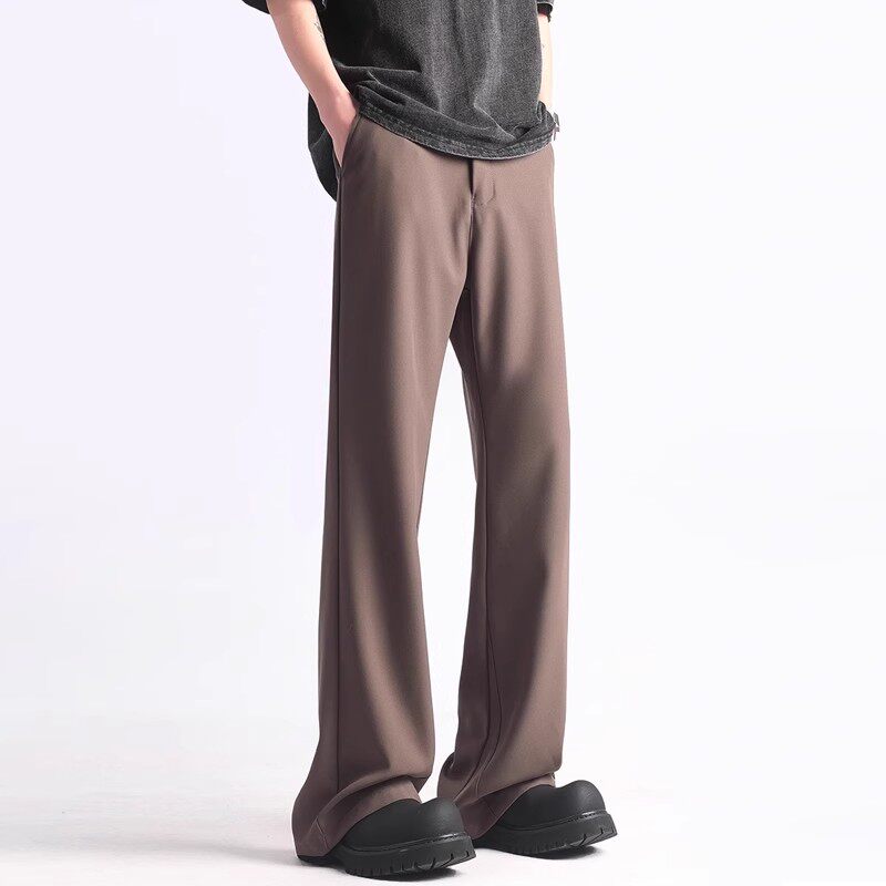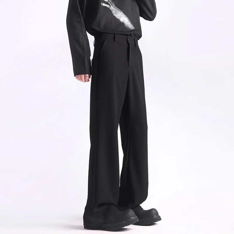 黑色垂感西裤男款秋冬季直筒cleanfit微喇裤子高级休闲西装裤男士