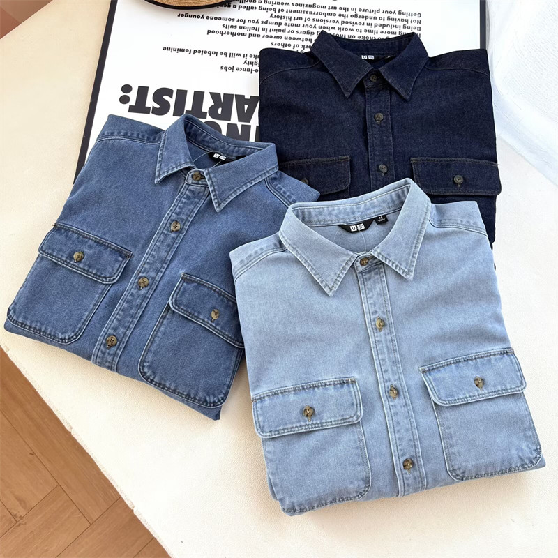 原单工厂26合作款男装女装牛仔衬衫水洗产品长袖衬衣外套M-484245