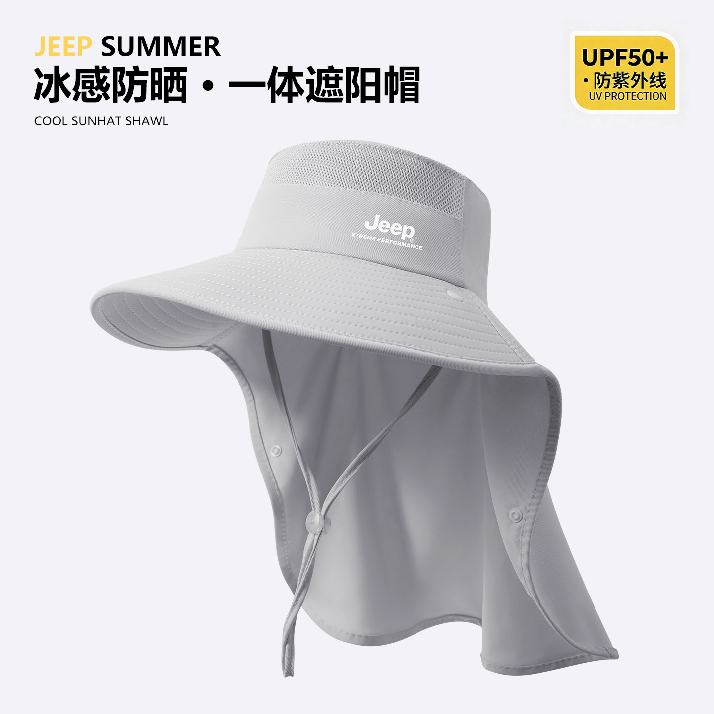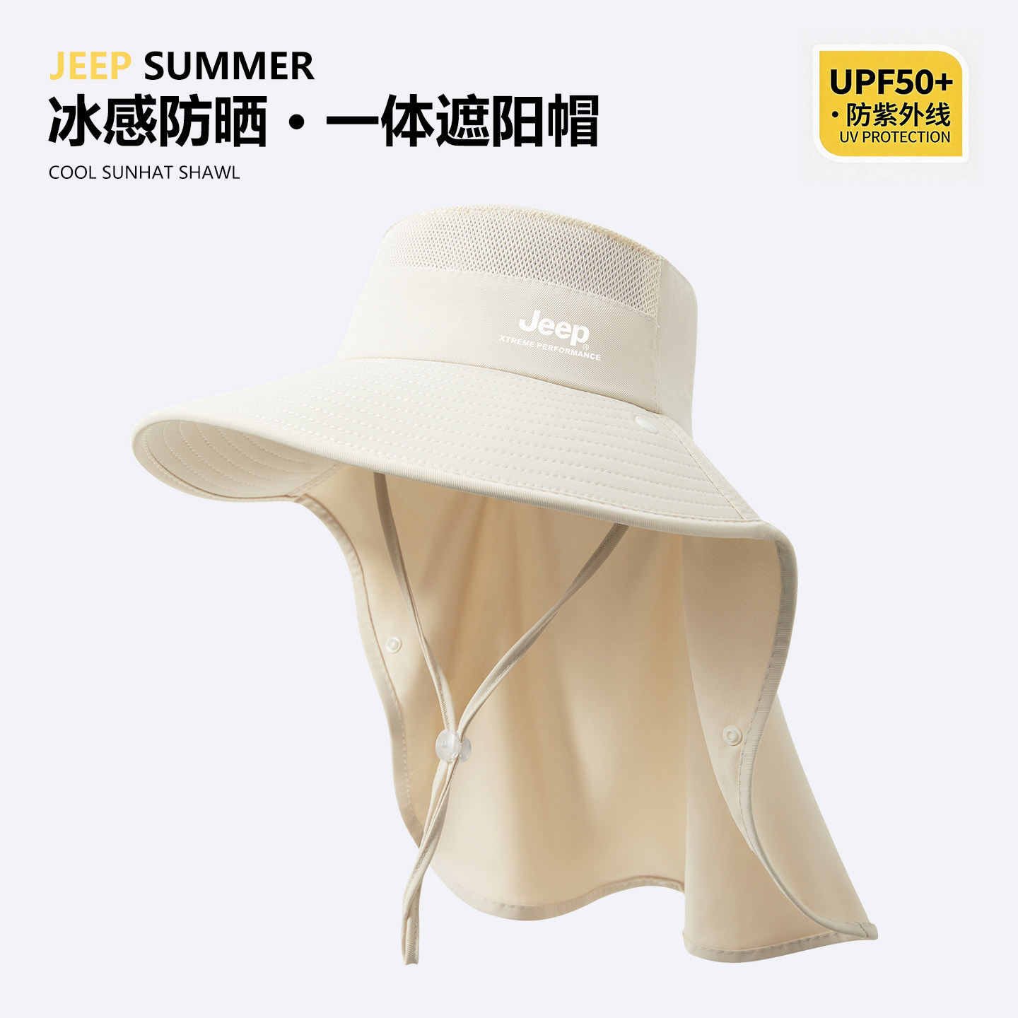 jeep吉普夏季女士披肩防晒帽户外骑行遮阳防紫外线护颈渔夫帽子女