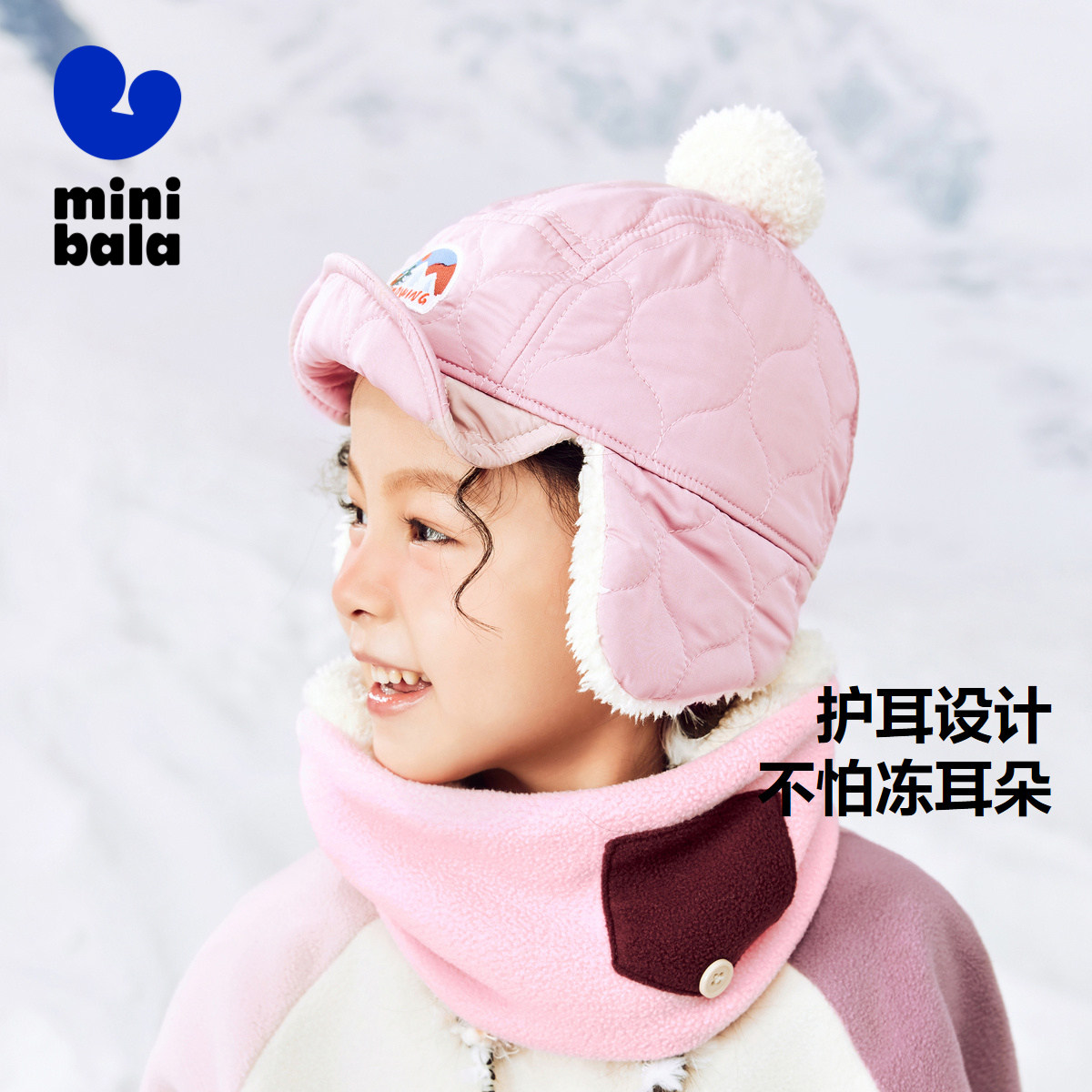 迷你巴拉巴拉男童女童透气帽子冬新款儿童内里加绒护耳帽宝宝