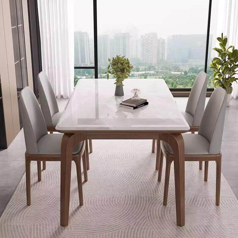 微晶石实木餐桌椅组合家用小户型超晶石长方形现代简约大理石桌子