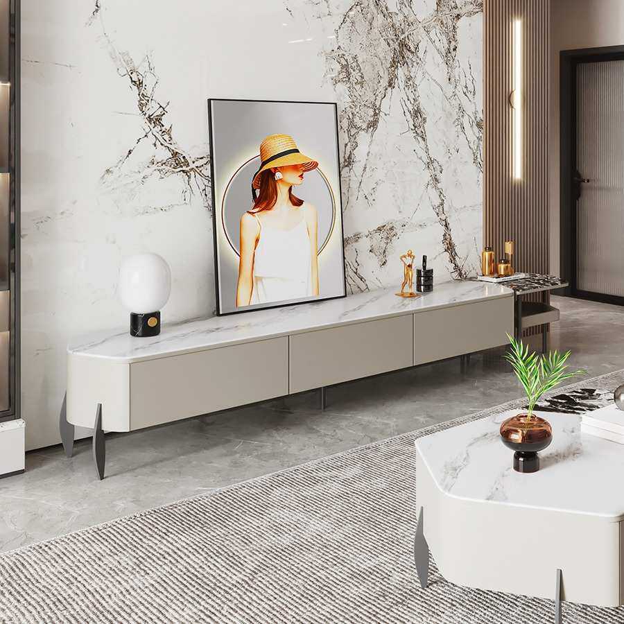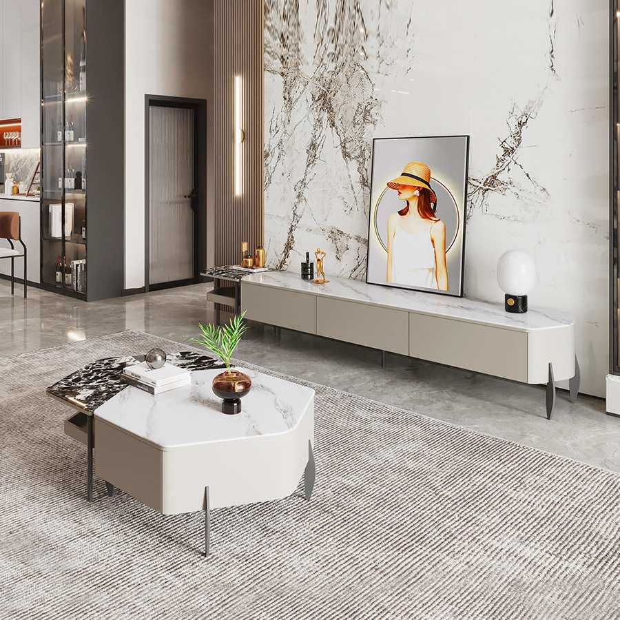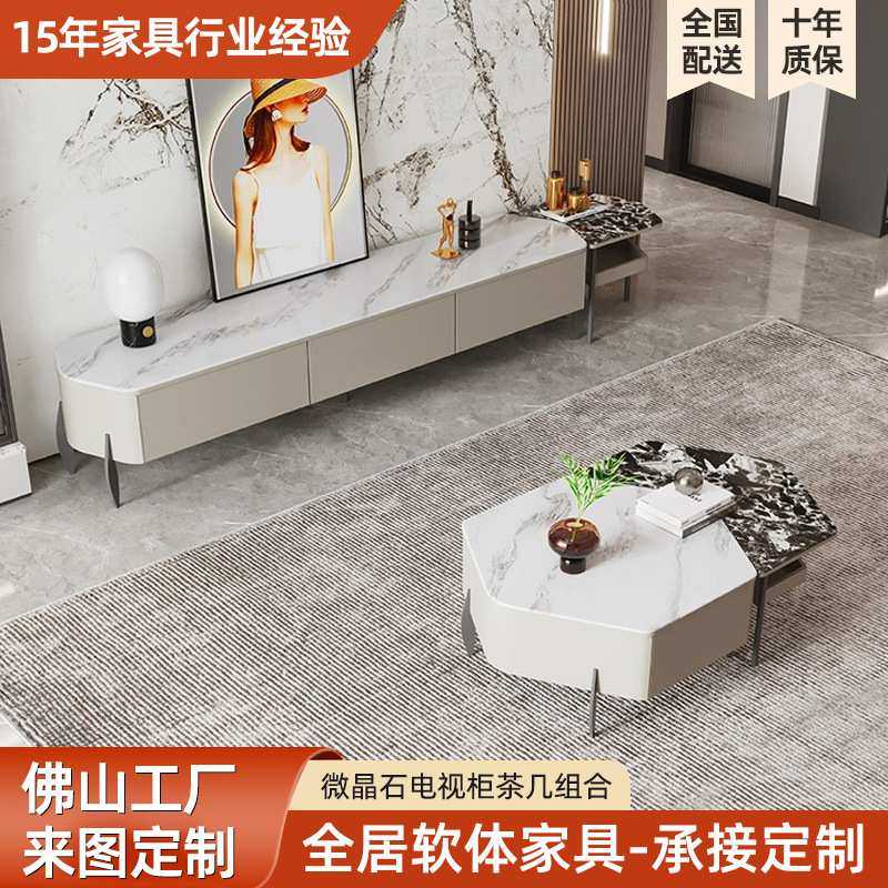 微晶石电视柜轻奢极简约高端异形储物超晶石意式客厅茶几组合地柜