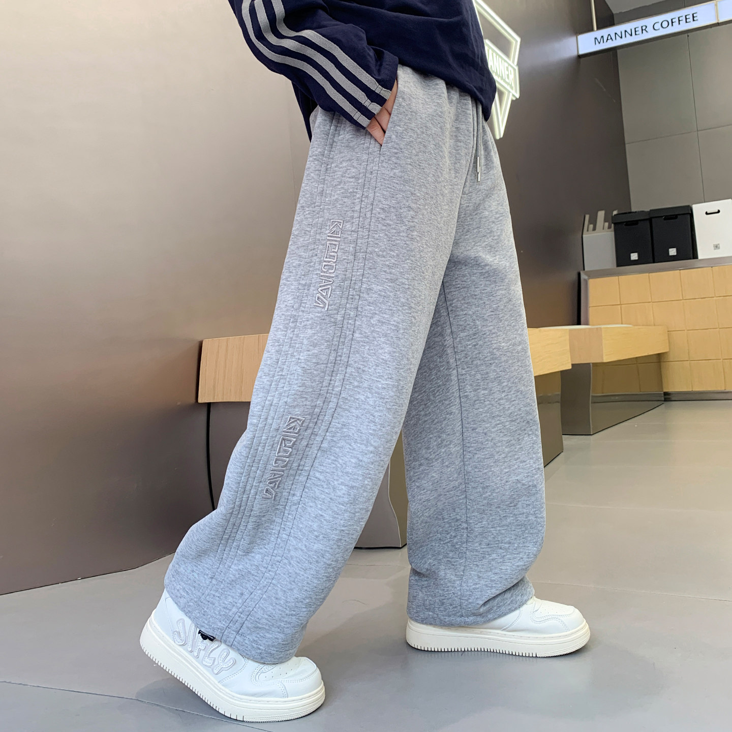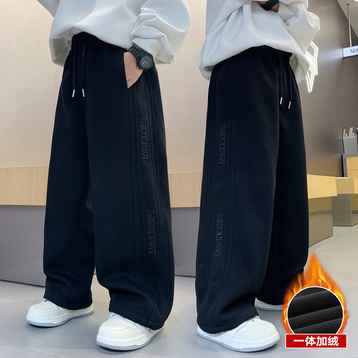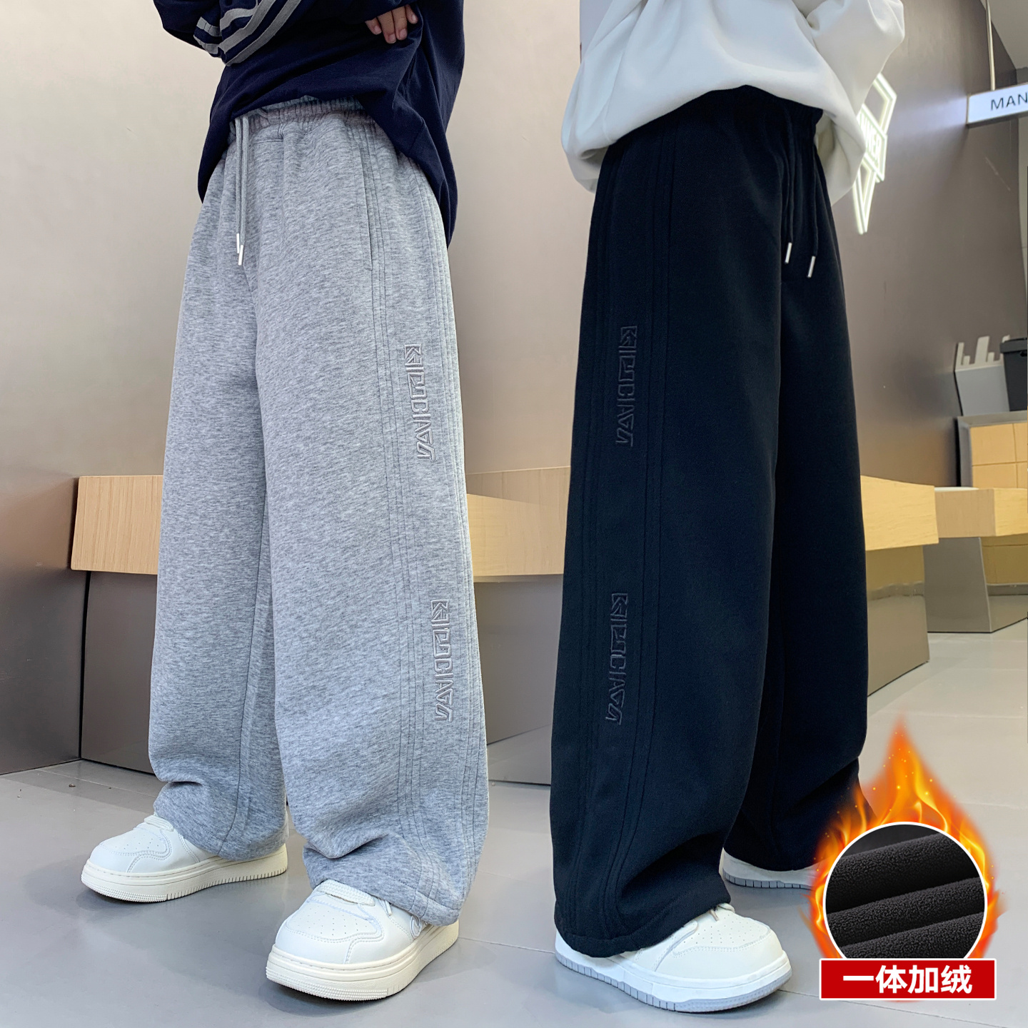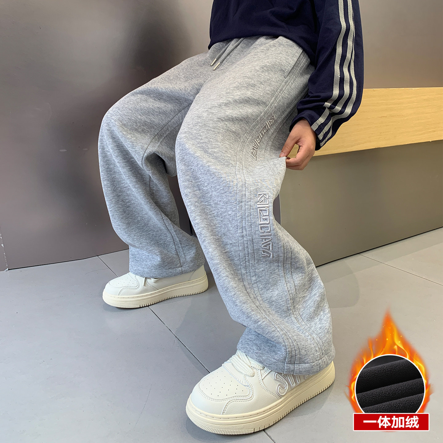 儿童加绒裤子男童阔腿裤2025新款运动直筒长裤秋冬装一体绒中大童