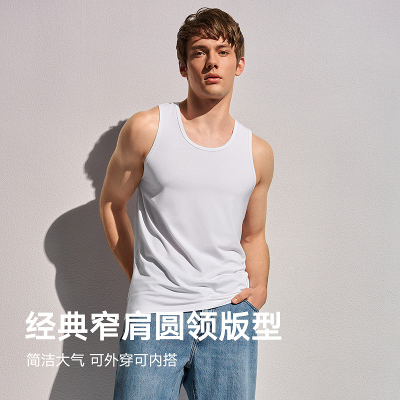 曼妮芬2025春男士舒适莫代尔休闲背心圆领运动打底上衣20400557