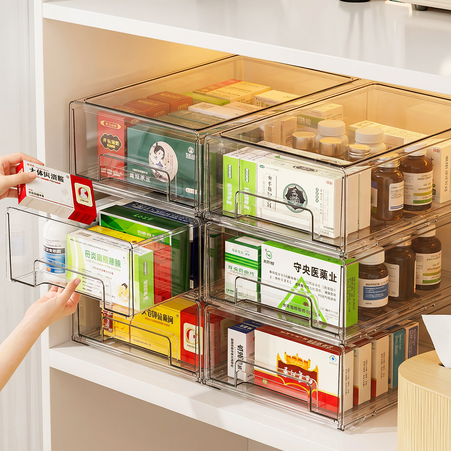 收纳盒抽屉式药箱桌面透明医药箱大容量家庭装药品分类收纳箱药盒