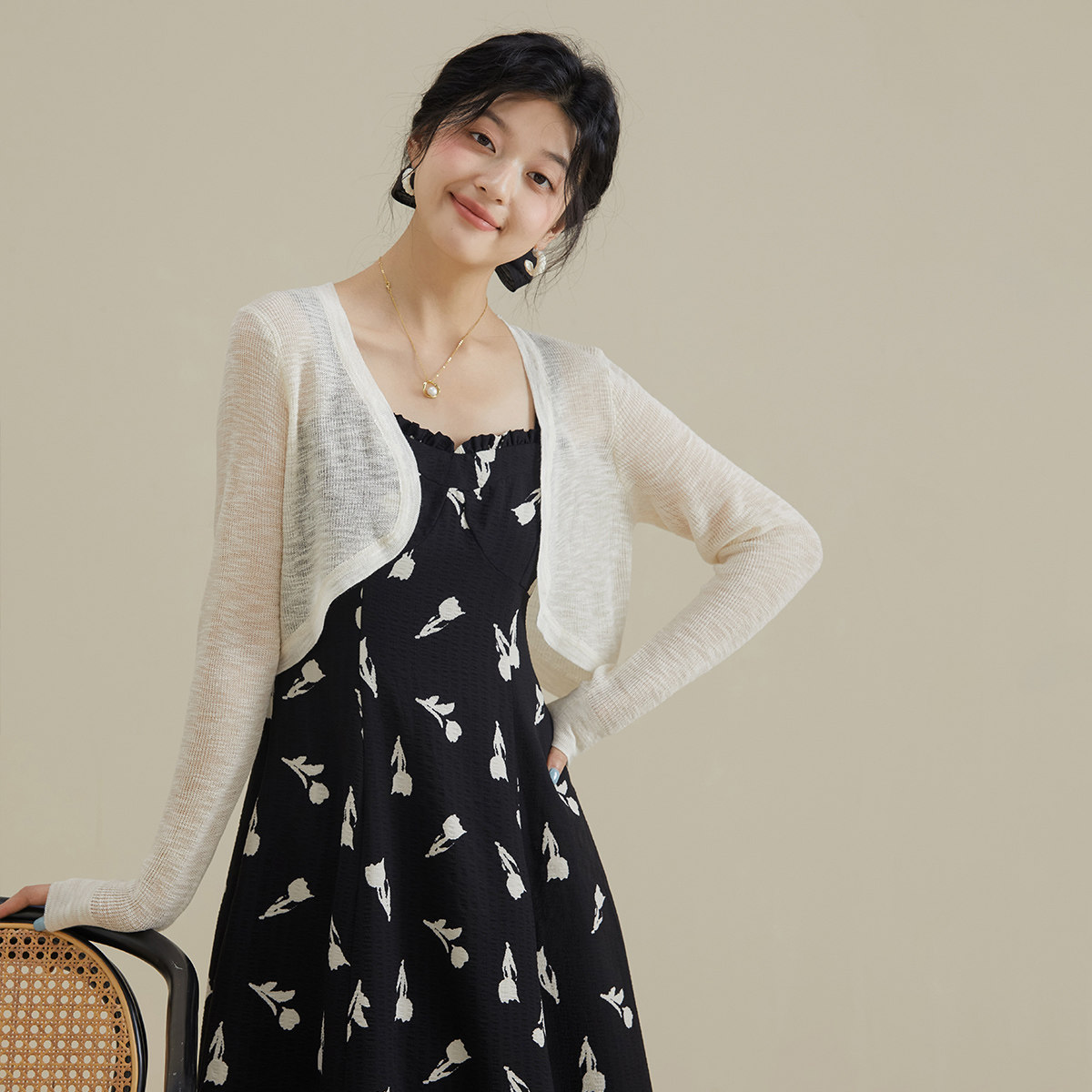 one more针织衫外套小开衫女2025秋季新款长袖披肩外搭罩衫高级感