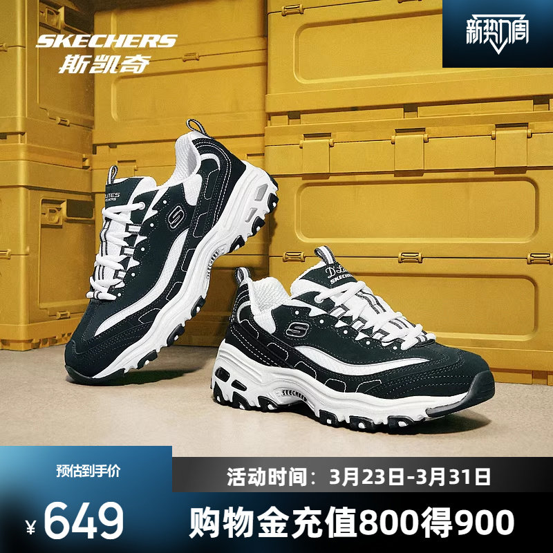 斯凯奇花海熊新款增高老爹鞋女士厚底鞋子休闲透气运动鞋时尚百搭