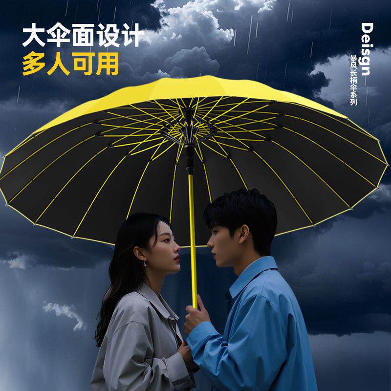 20骨直柄黑胶伞 抗暴风雨加大长柄雨伞自动双人加固防晒晴雨两用