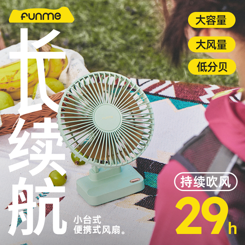 FUNME桌面台式小风扇超强力长续航便携式usb充电型学生宿舍家用办公室桌面迷你静音小型简约ins大风力电风扇