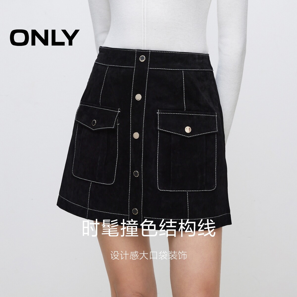 【ONLY奥莱】春季新款时髦设计感撞色口袋皮裙短裙半身裙女