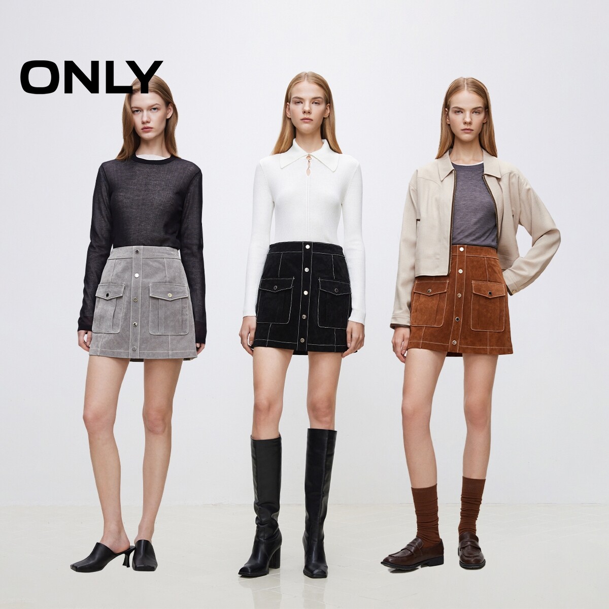 【所有女生的衣橱直播间】极尔斯 斜纹半身裙/高领T恤