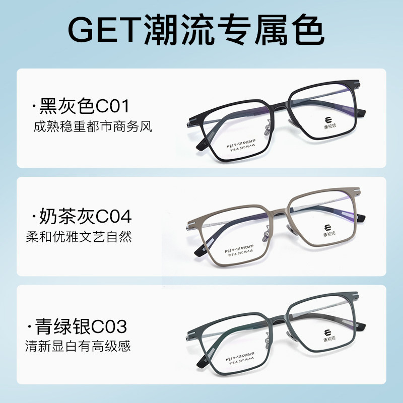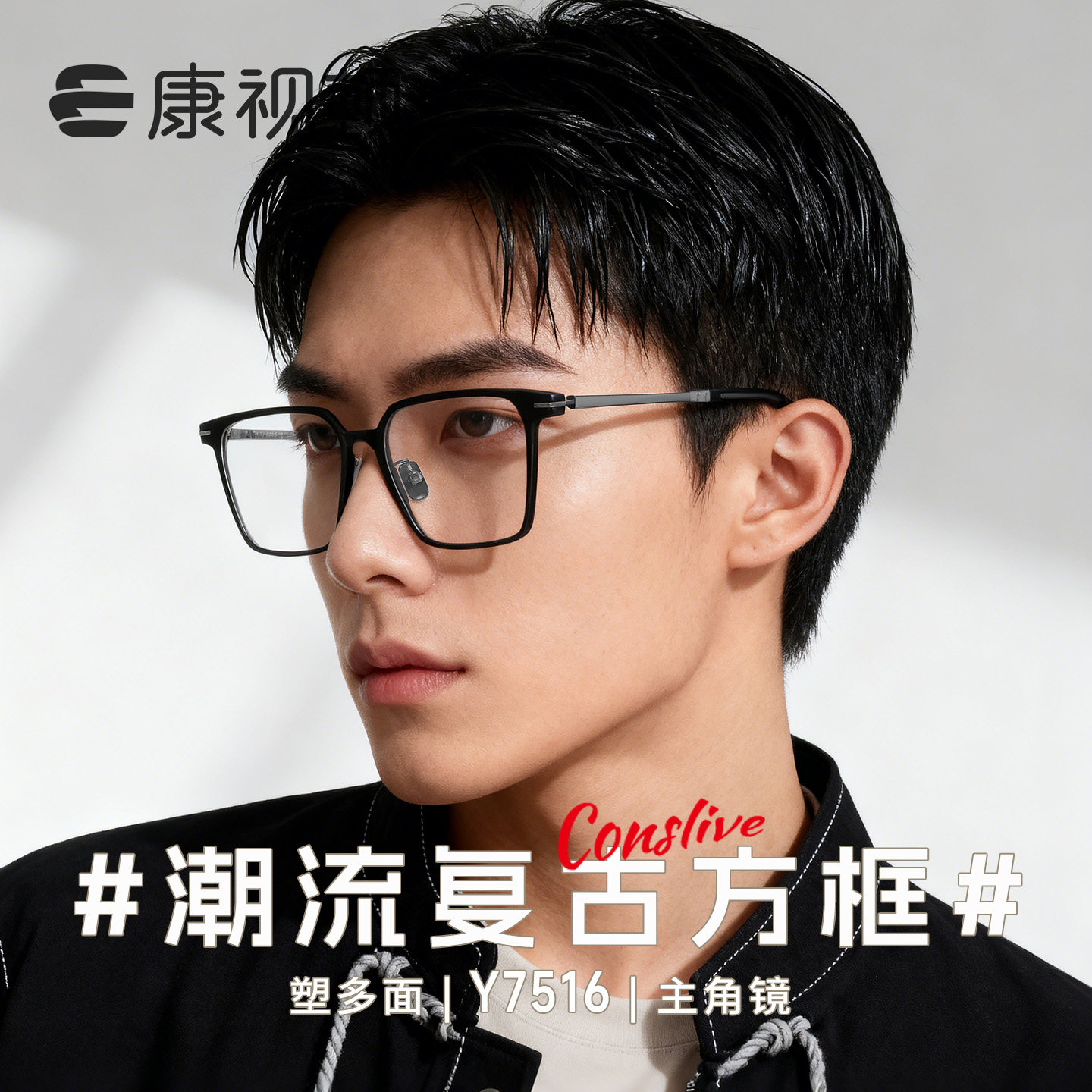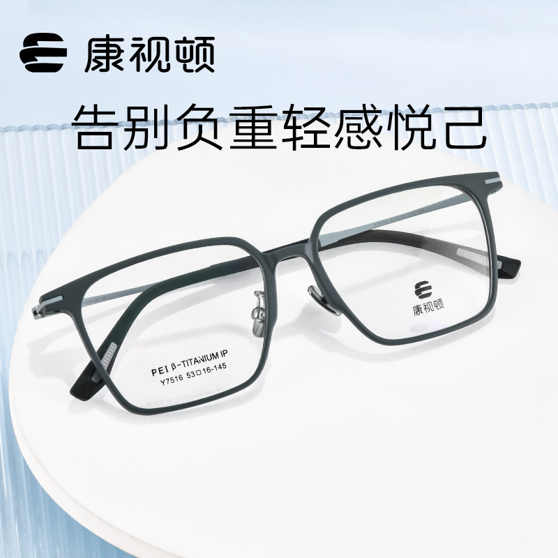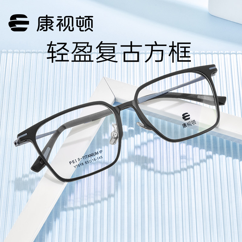 康视顿眼镜新品 潮流复古方框 轻盈舒适 柔韧β钛近视眼镜架Y7516