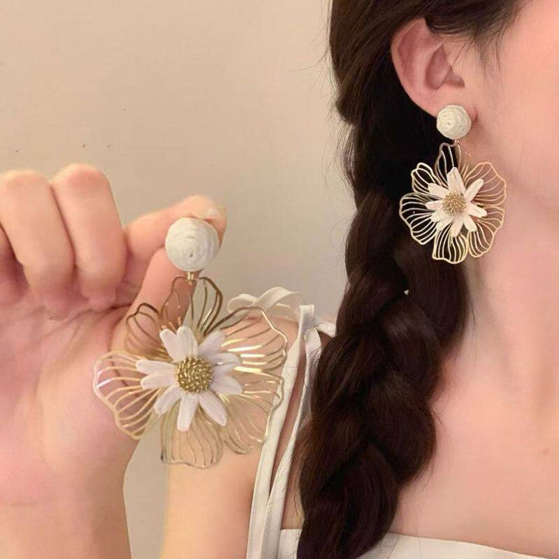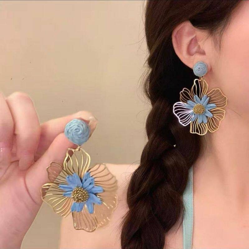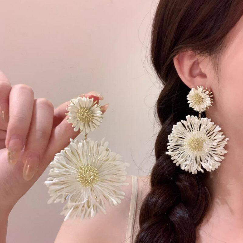 曼谷之花~度假风黄色草编花朵耳环2026新款耳钉独特夸张漂亮耳饰