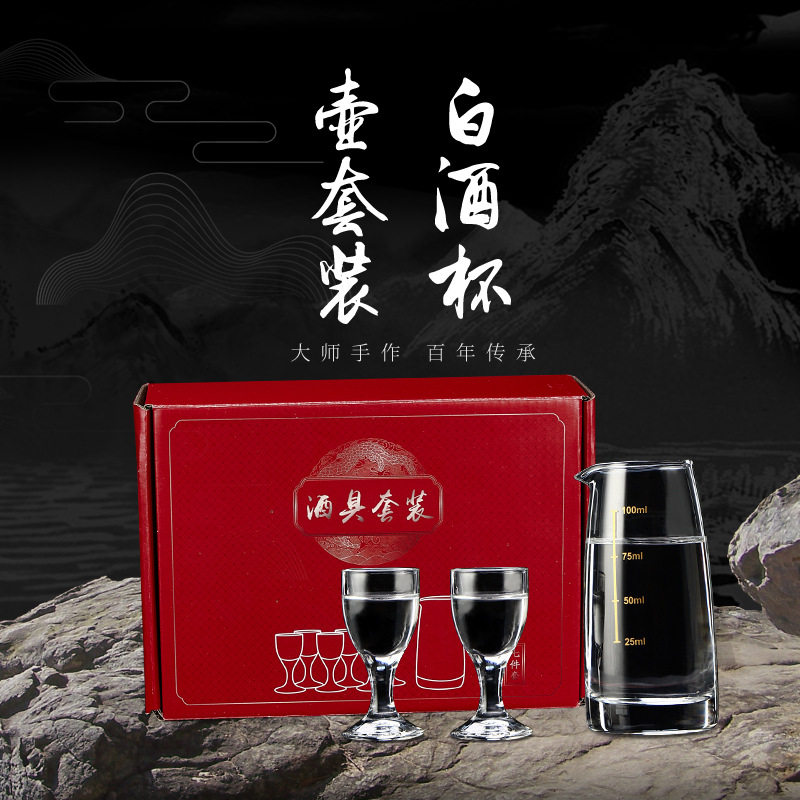 中式家用玻璃白酒杯礼盒套装一口杯烈酒杯分酒器分酒壶小号高脚杯
