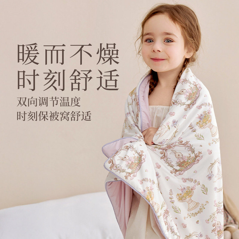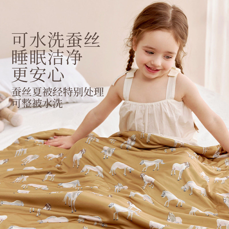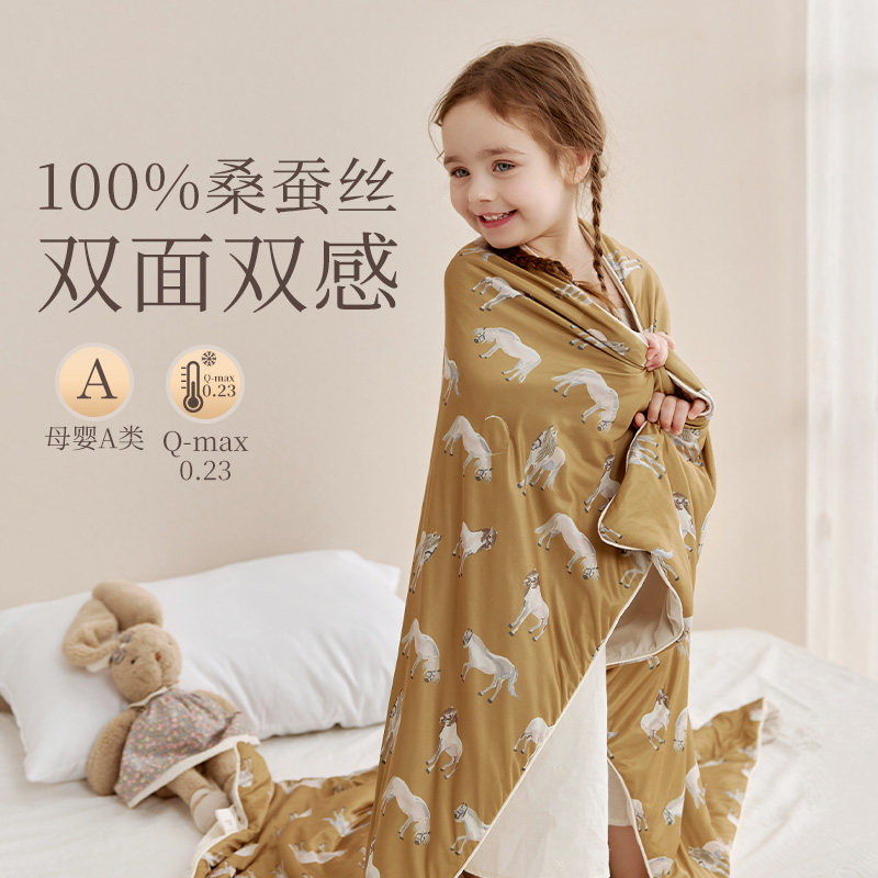 英氏母婴A类双面双感蚕丝被100%桑蚕丝儿童蚕丝被幼儿园空调夏被