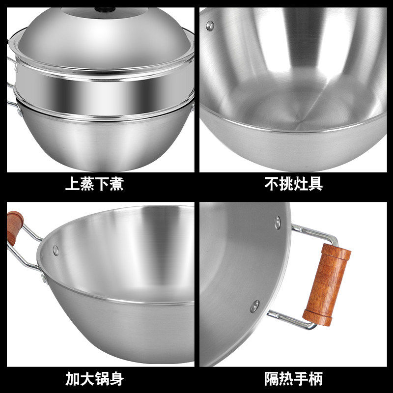 康巴赫老式双耳炒锅平底不锈钢锅家用炒锅煲汤炖锅无涂层不沾锅a9