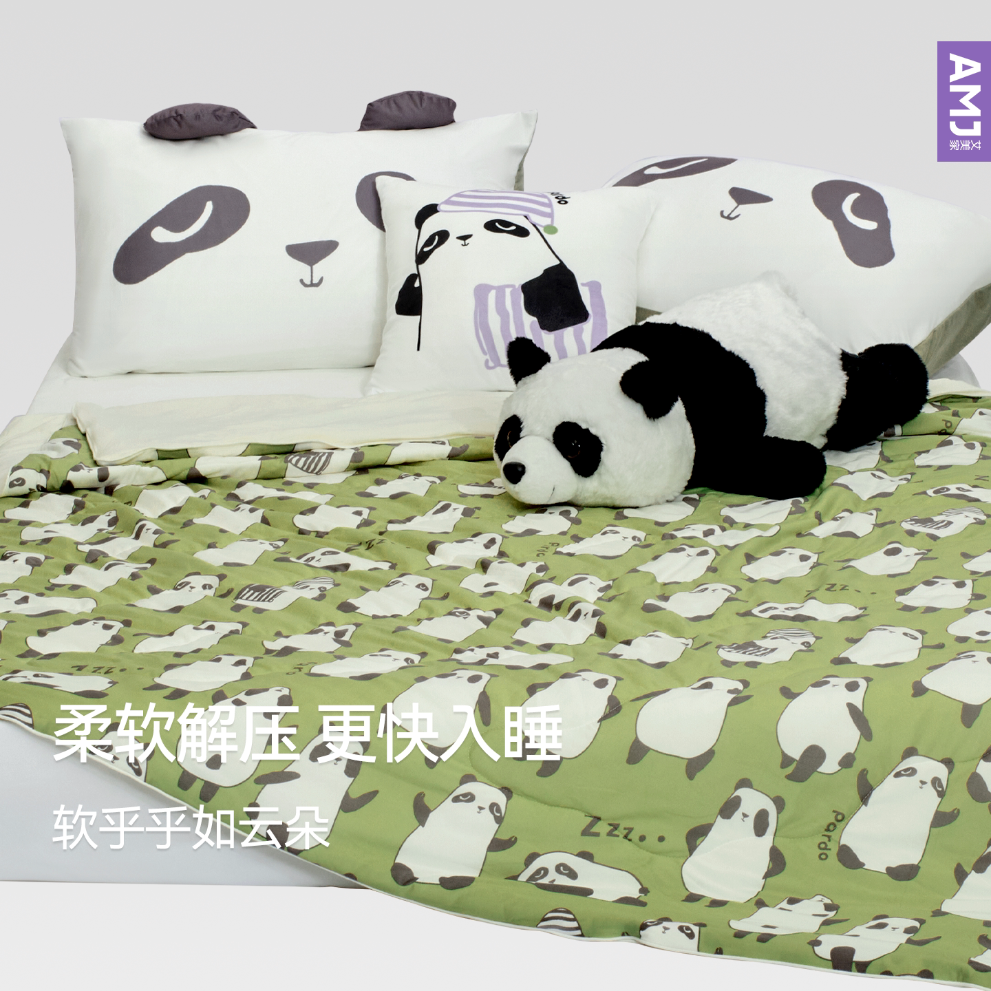 AMJ好睡夏被艾美家棉花糖熊猫可机洗儿童宝宝空调被被子被芯夏季