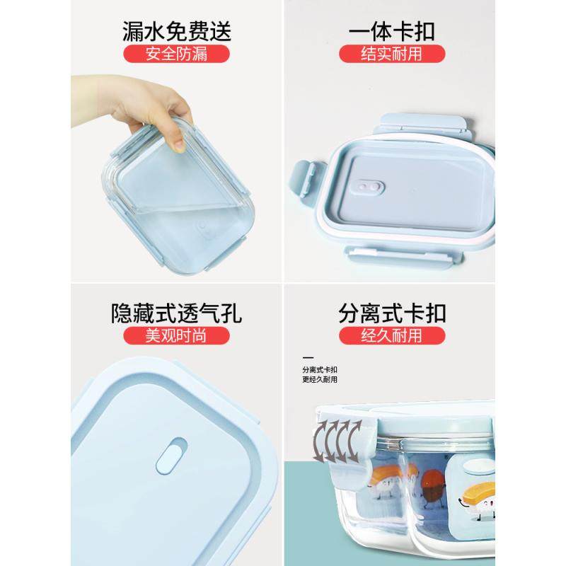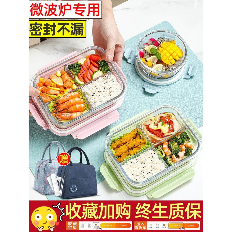 玻璃饭盒微波炉加热专用学生上班族带饭餐盒保鲜盒分隔密封便当碗