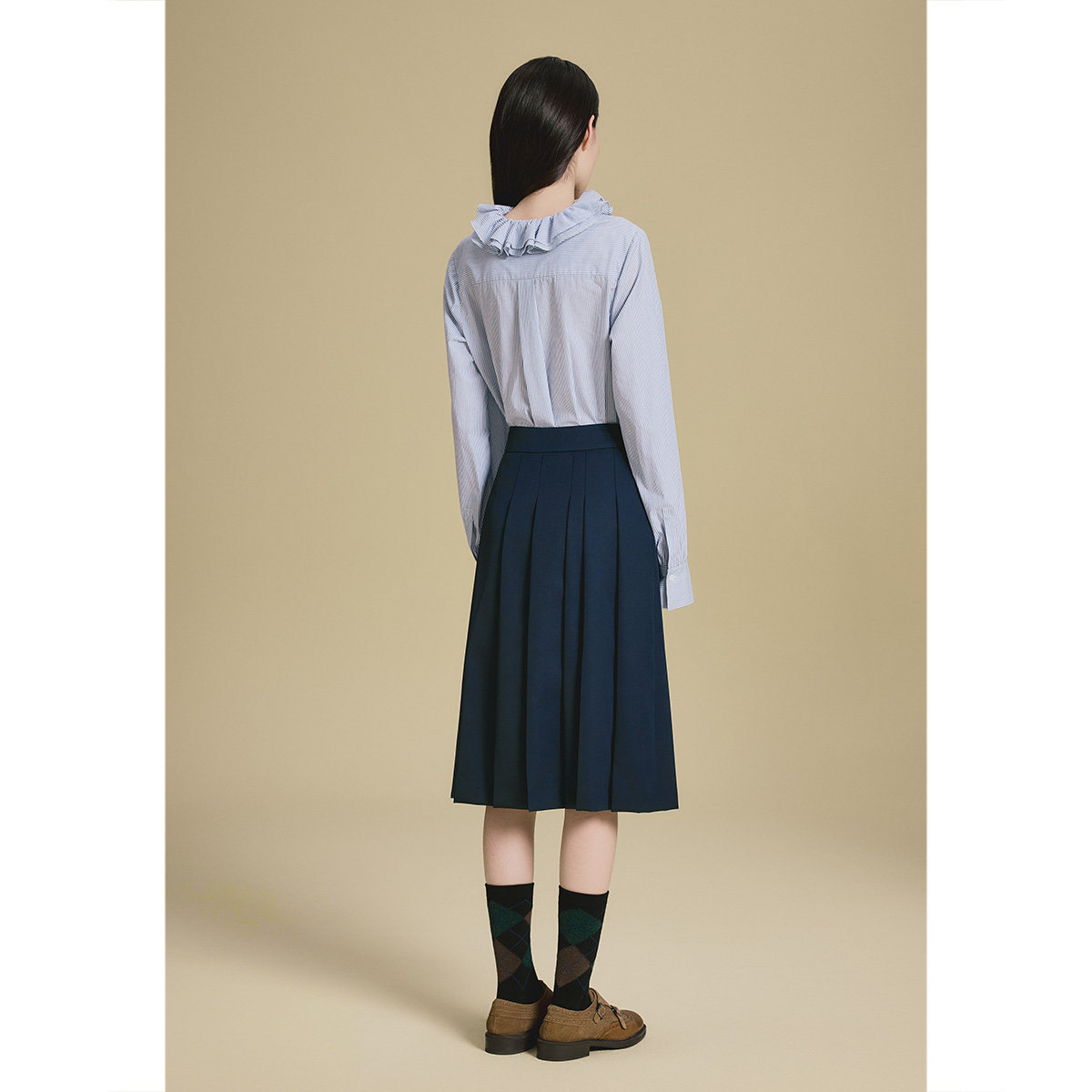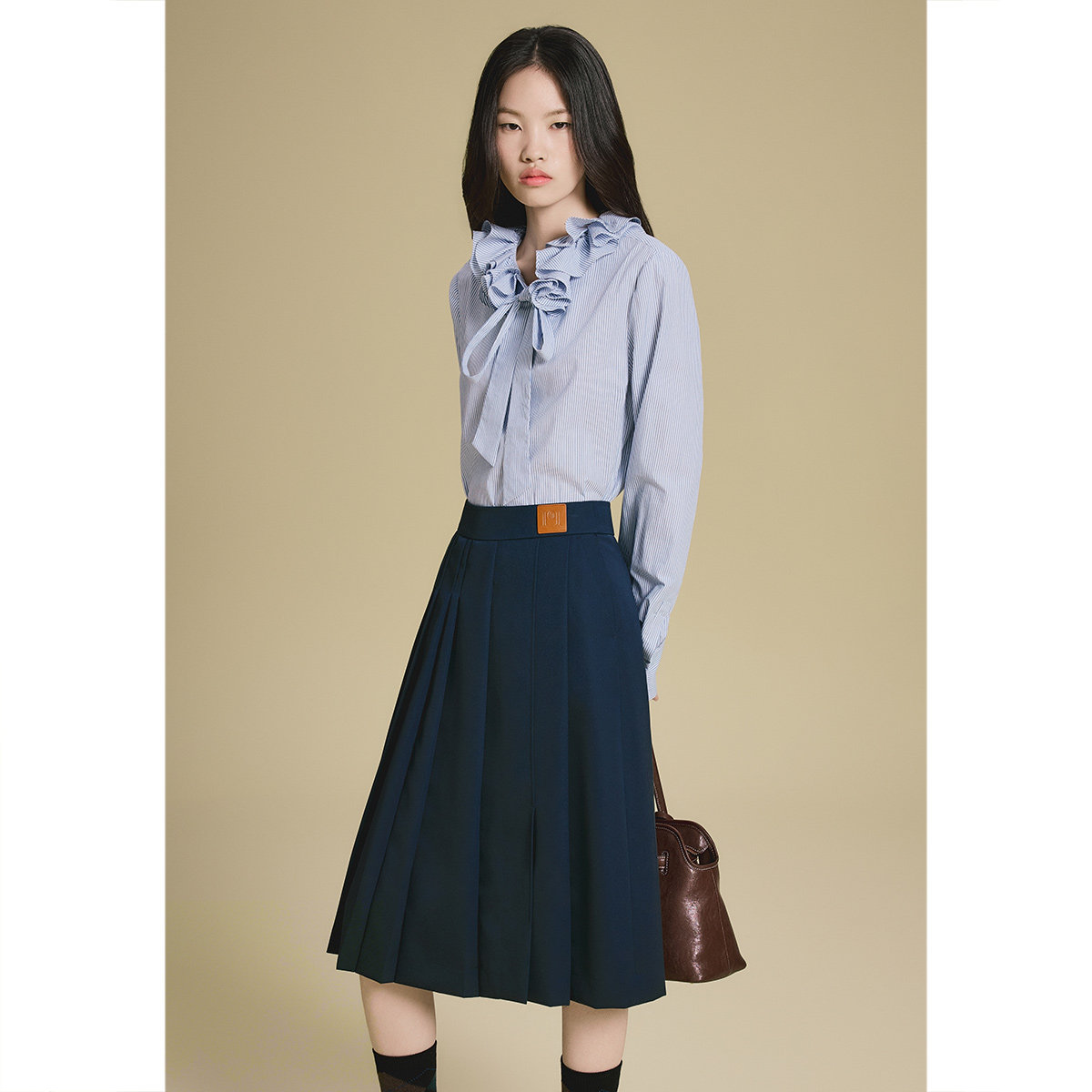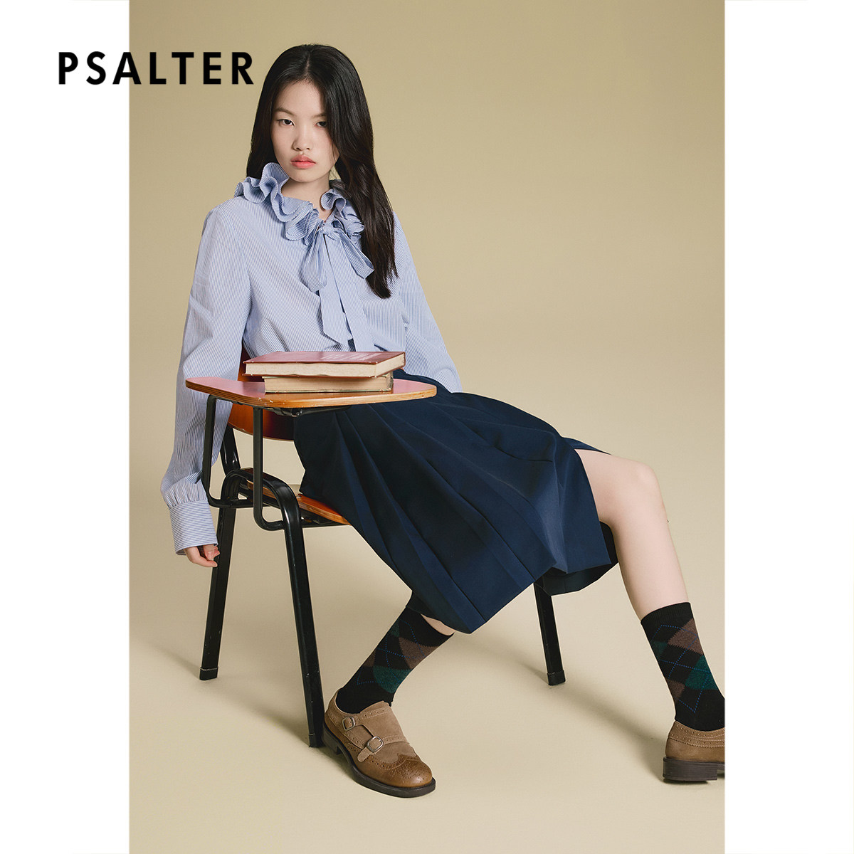 PSALTER诗篇复古立体花边领系带条纹单上衣秋款