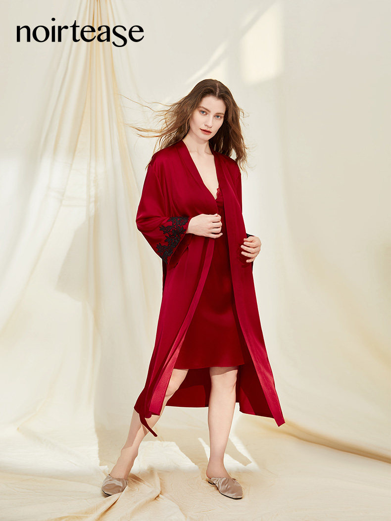 银桑INESANCE22姆米重磅长款真丝睡裙蕾丝宽松轻奢桑蚕丝女士睡衣