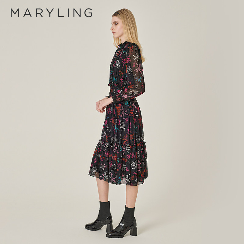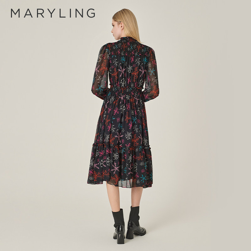 【落花缤纷】MARYLING玛俪琳秋新品艺术印花连衣裙A1EGW62210