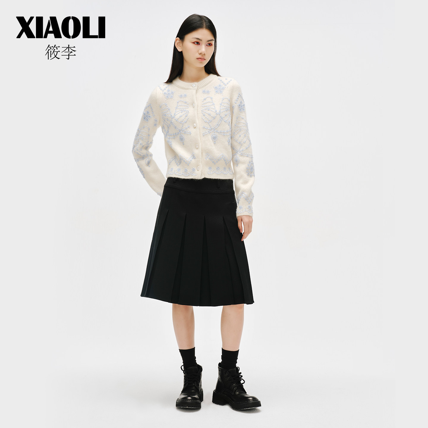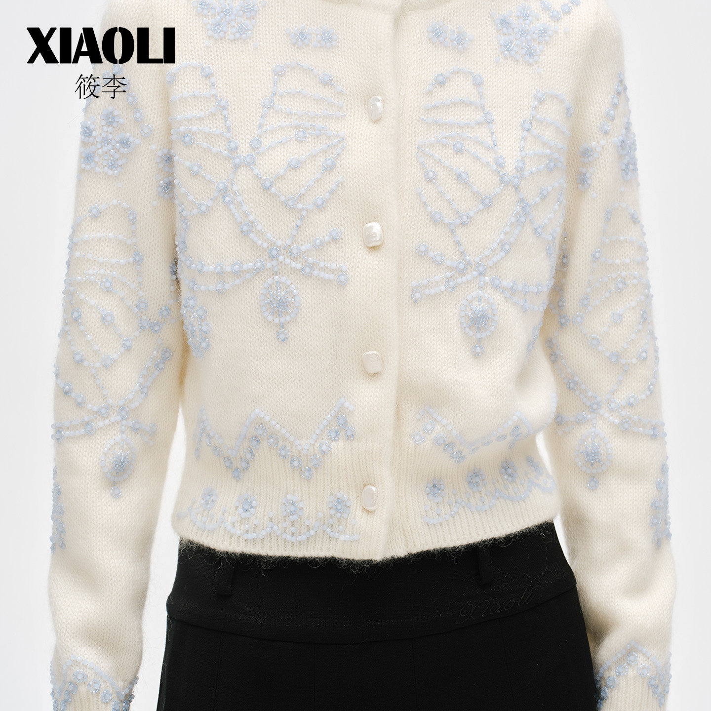 XIAOLI筱李秋冬新品费尔岛马海毛刺绣钉珠短款针织开衫外套女