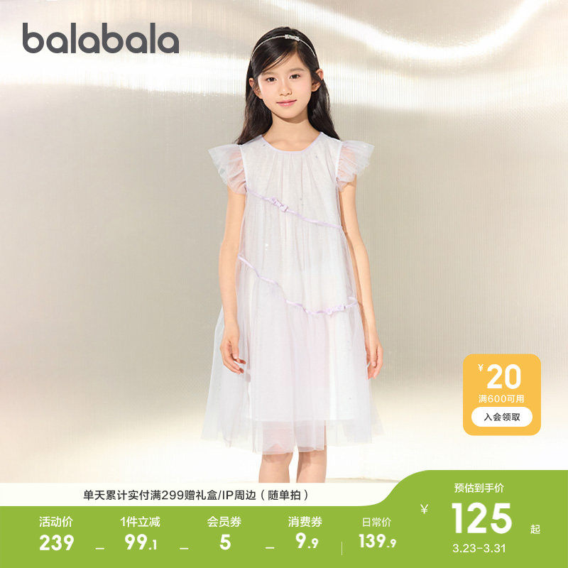 【balaOne】巴拉巴拉童装女童连衣裙2025新款春装网纱裙甜美洋气
